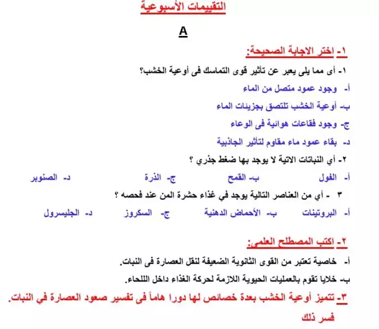 مرفق بالأسفل الأوراق التي نشرتها الوزارة، وتحتوي على الأداء المنزلي والتقييم الأسبوعي، ومثال الأسئلة الواردة فيهما ما يلي: