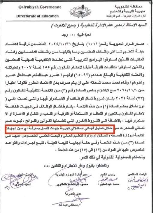 عاجل| بشرى لـ15 ألف معلم وأخصائي بالقليوبية وتحليل مخدرات مفاجئ لهؤلاء "مستند"
