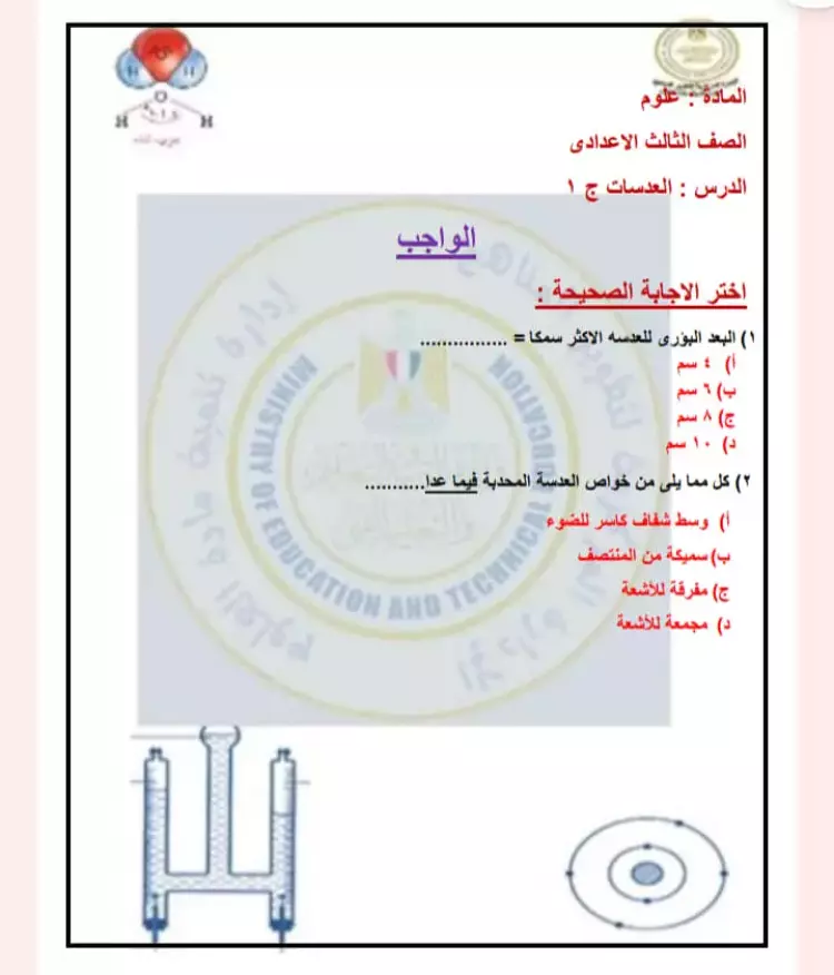الواجب المنزلي للصف الثالث الإعدادي علوم الأسبوع الثامن 2024