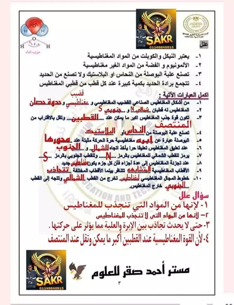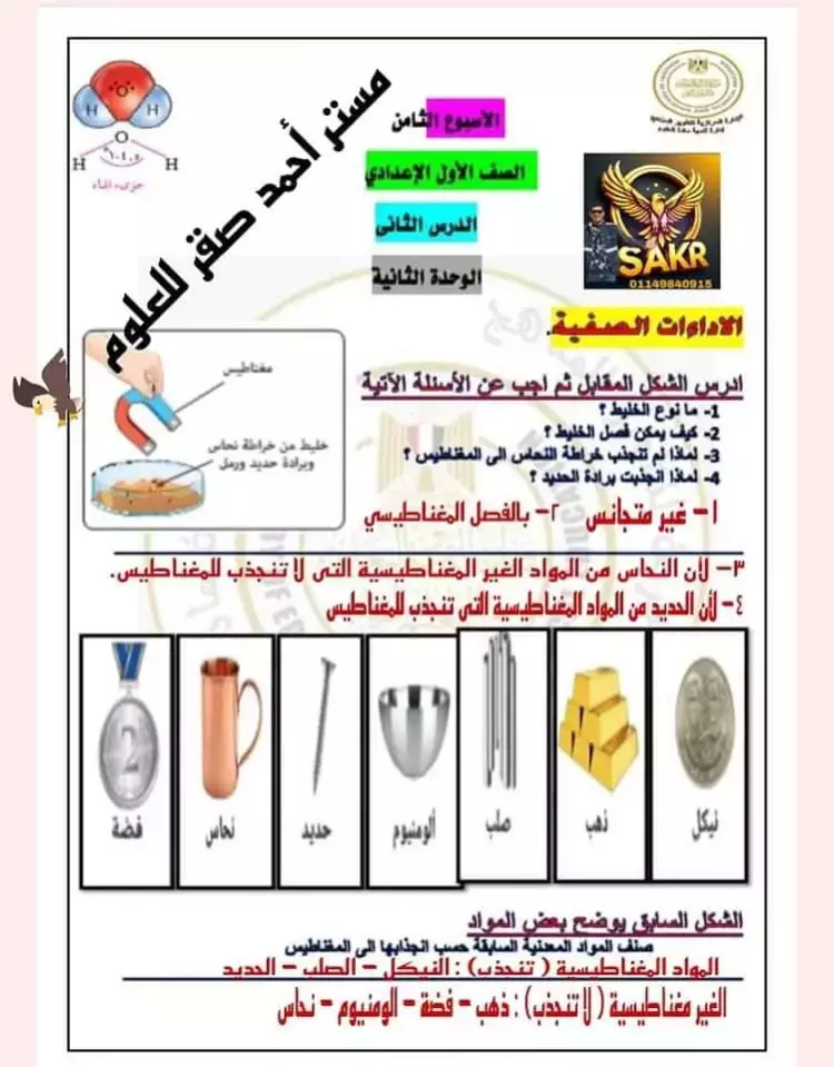 يمكنك الحصول على باقي حل التقييم الأسبوعي والأداء الصفي والواجب المنزلي للصف الأول الإعدادي علوم الأسبوع الثامن من خلال الصور التالية:
