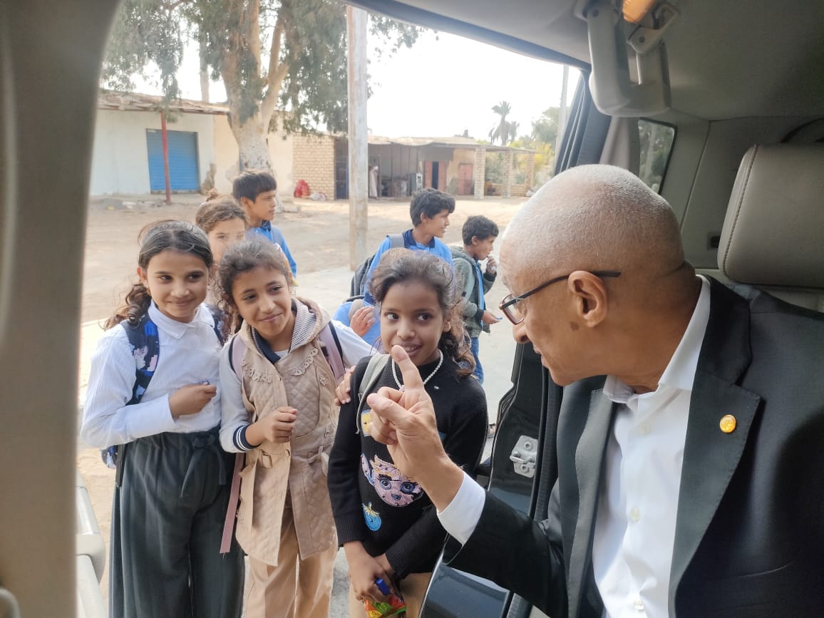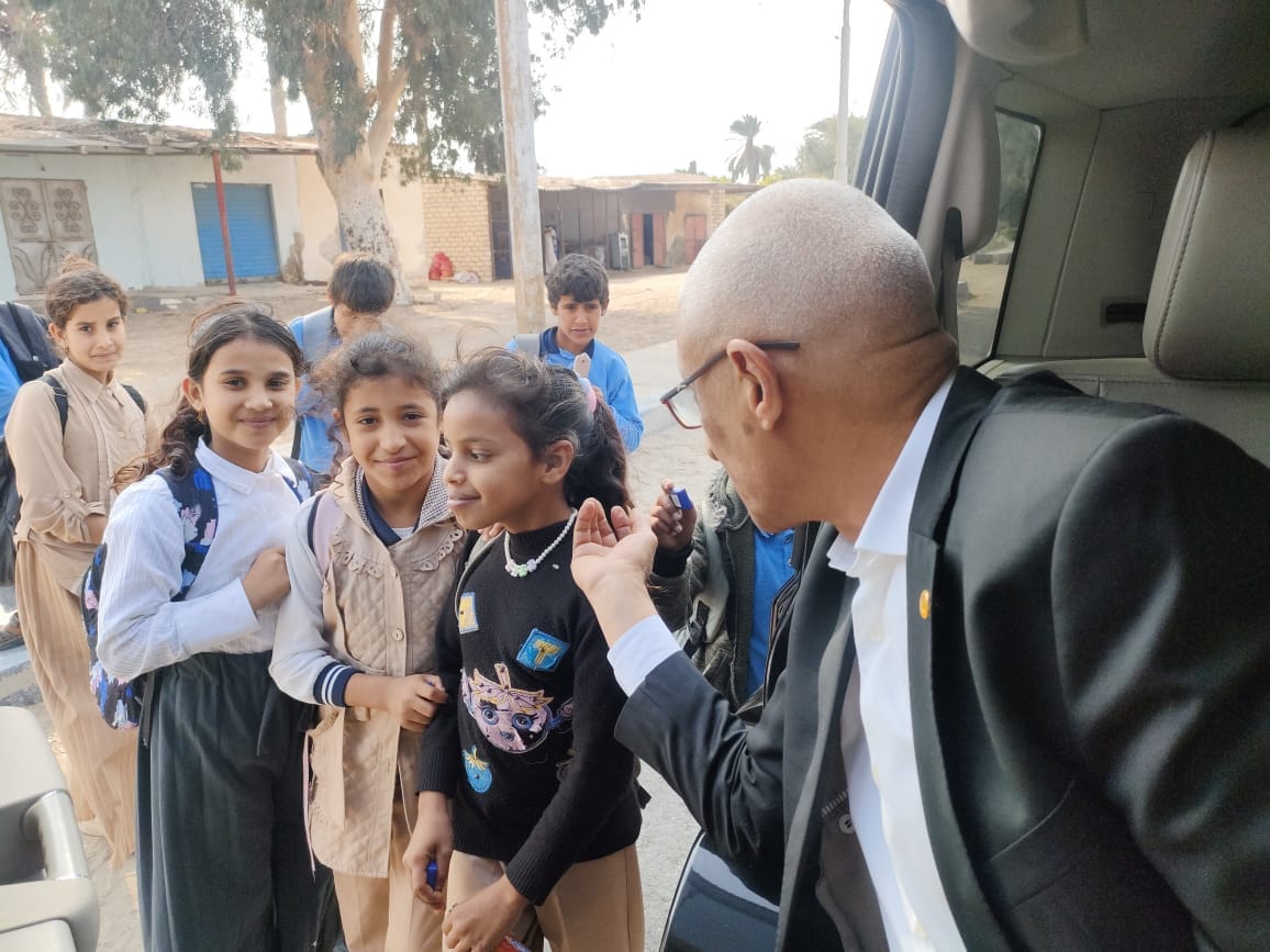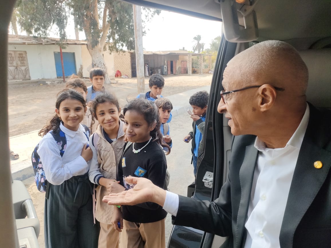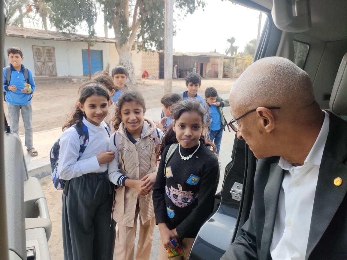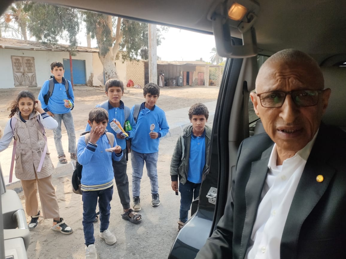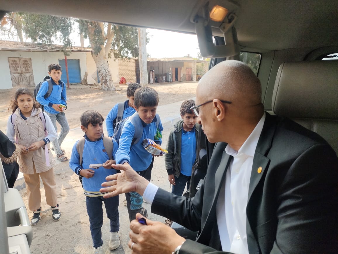 عاجل| «إنسان».. محافظ شمال سيناء يتوقف بسيارته لتوزيع الحلوى على الطلاب