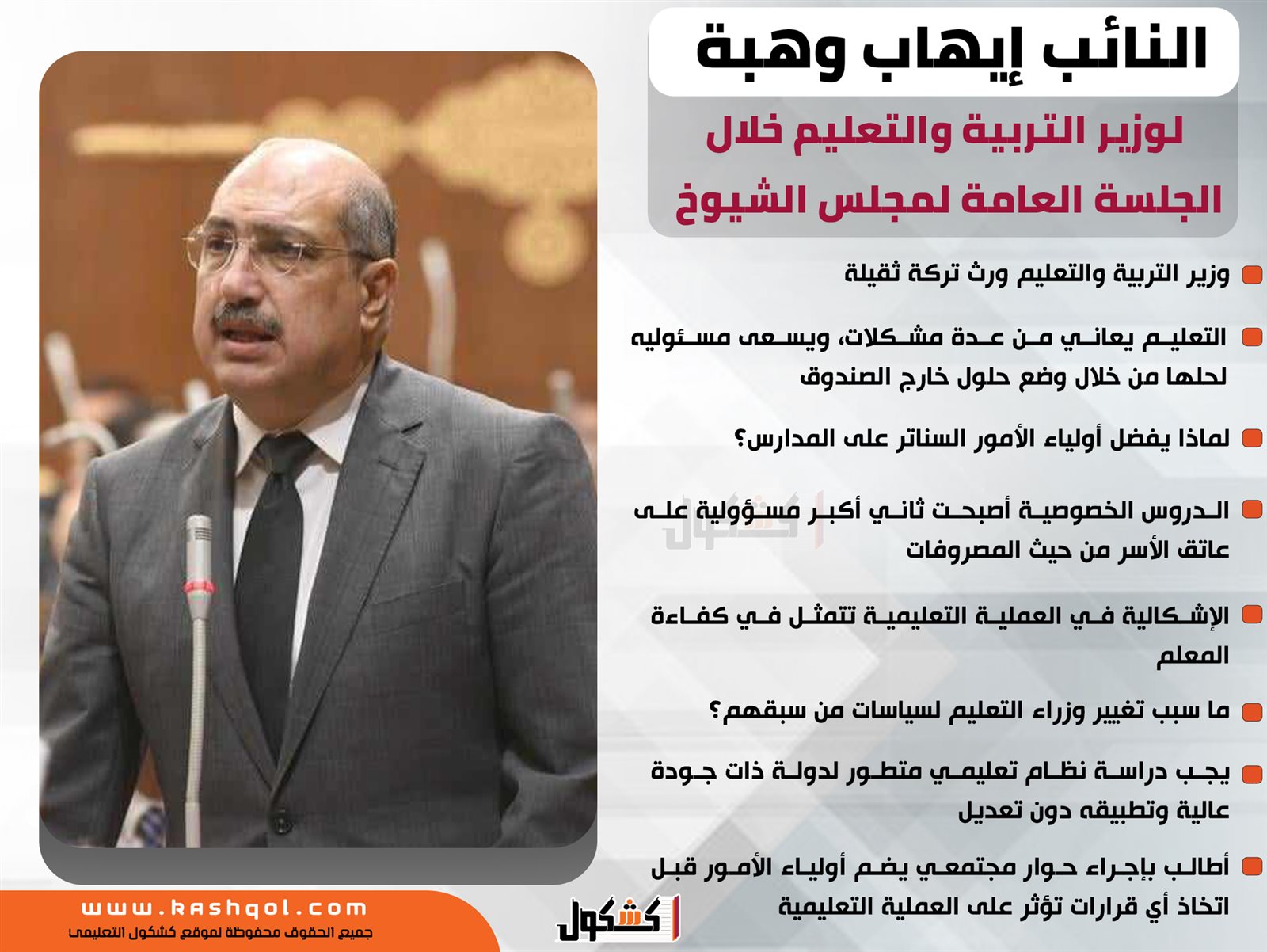 ننشر بالانفوجراف تصريحات النائب إيهاب وهبة لوزير التربية والتعليم خلال الجلسة العامة لمجلس الشيوخ: