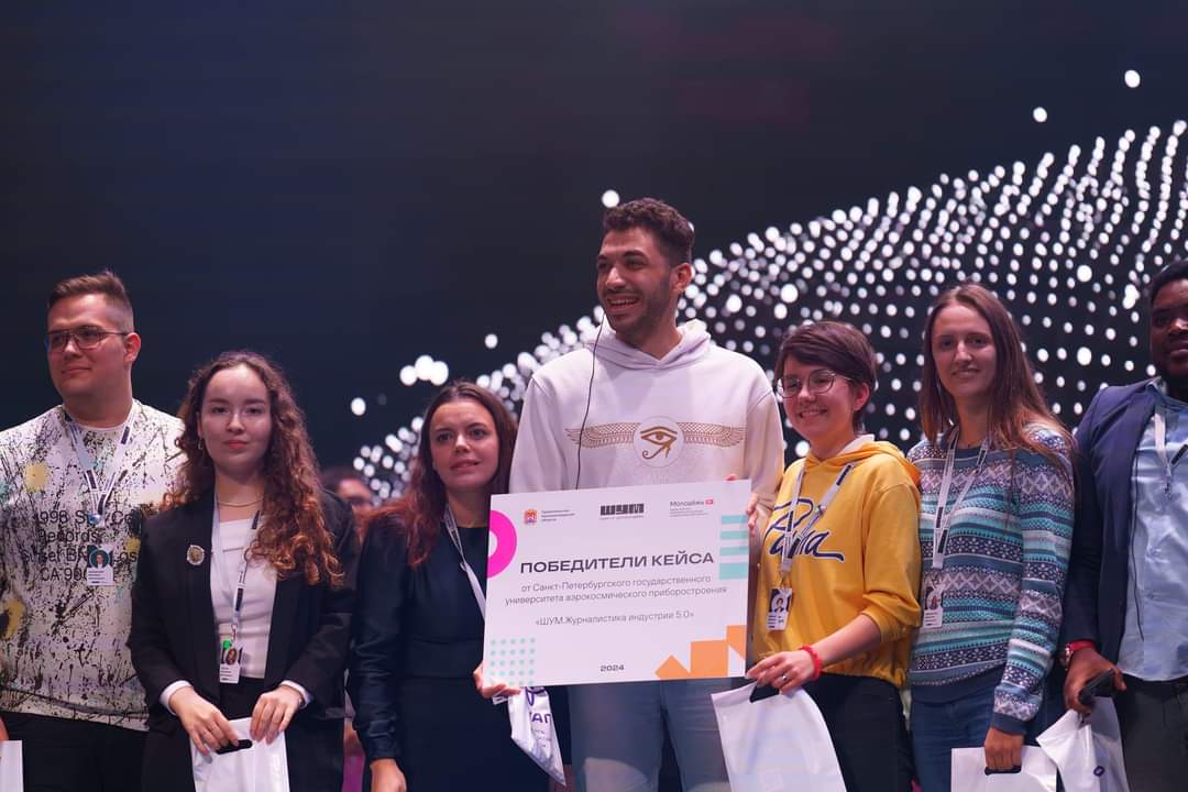 طالب جامعة حلوان يحصد جائزة أفضل مشروع في منتدى صناع الإعلام بروسيا