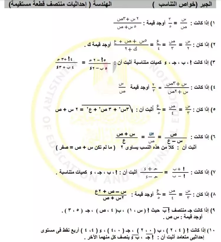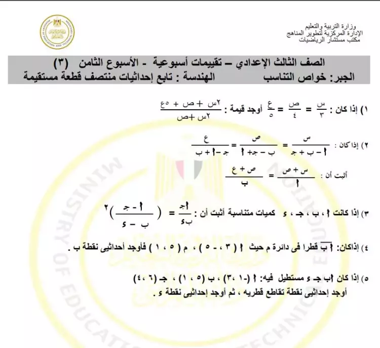 نرصد لك في السطور التالية تقييمات الأسبوع الثامن للصف الثالث الإعدادي مادة الرياضيات، والتي من خلالها يمكنك التعرف على الأسئلة المطلوب حلها.
