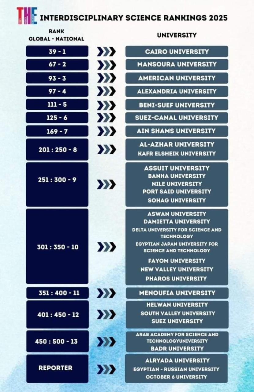 جامعة سوهاج تحقق المركز (251-300) في تصنيف التايمز للتخصصات البينية