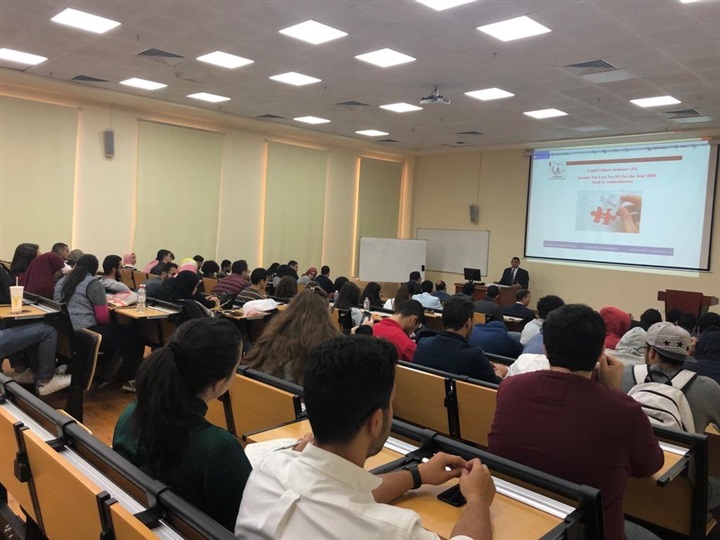 استضافت كلية القانون بالجامعة البريطانية في مصر، محمد ماهر شحاته وكيل وزارة المالية، ليلقى ندوة عن قانون الضرائب على الدخل رقم ٩١ لسنة ٢٠٠٥ ضمن سلسلة الندوات التي تنظمها كلية القانون والتي تعقد للعام الثالث على التوالي تحت شعار "الجهل بالقانون ليس بعذر".