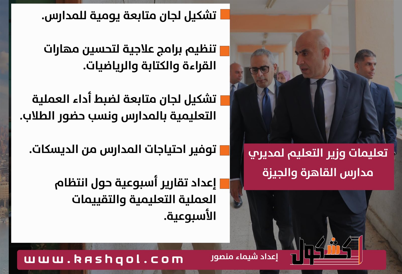 ننشر في الانفوجراف التالي تعليمات وزير التعليم لمديري مدارس القاهرة والجيزة.