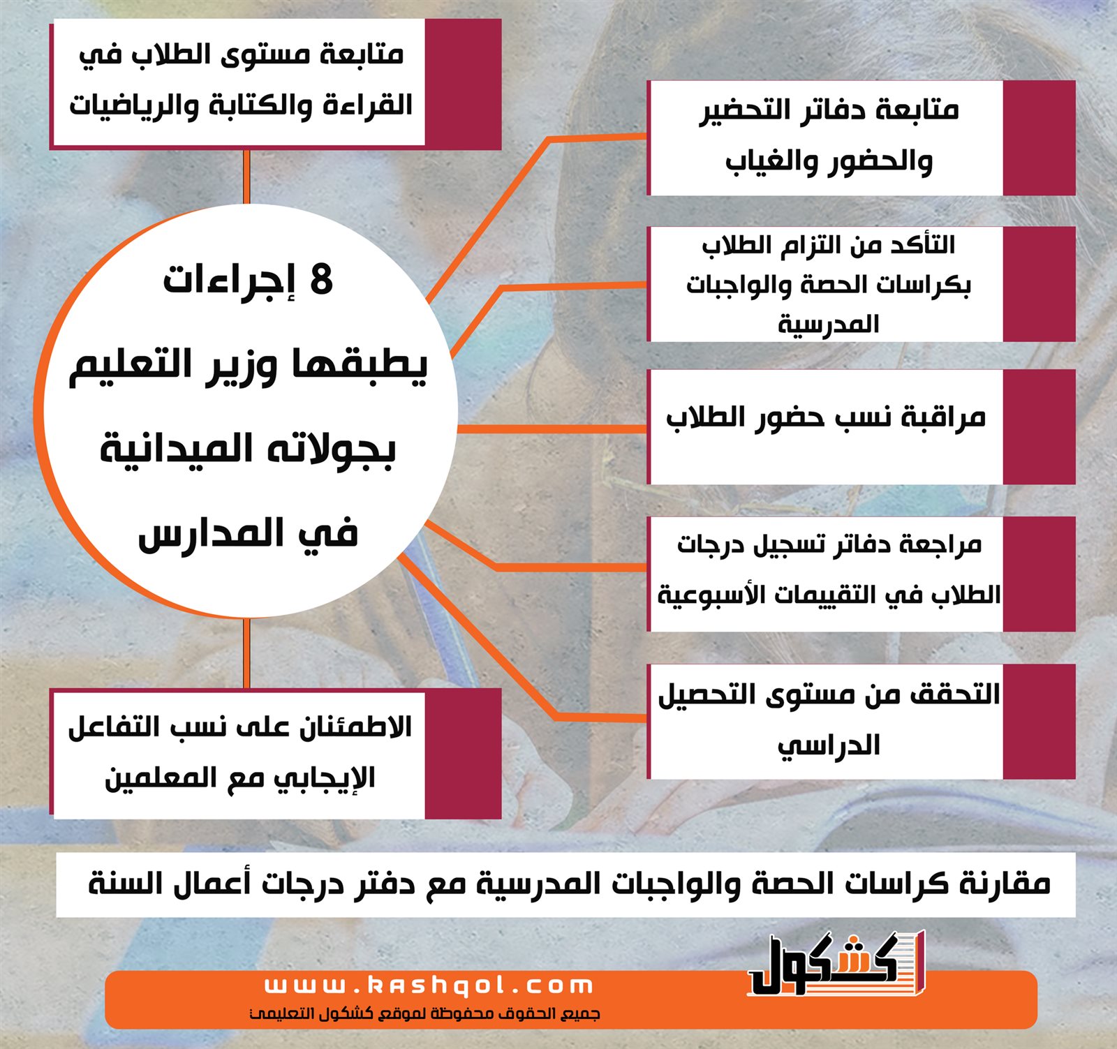 انفوجراف.. 8 إجراءات يطبقها وزير التعليم بجولاته الميدانية في المدارس
