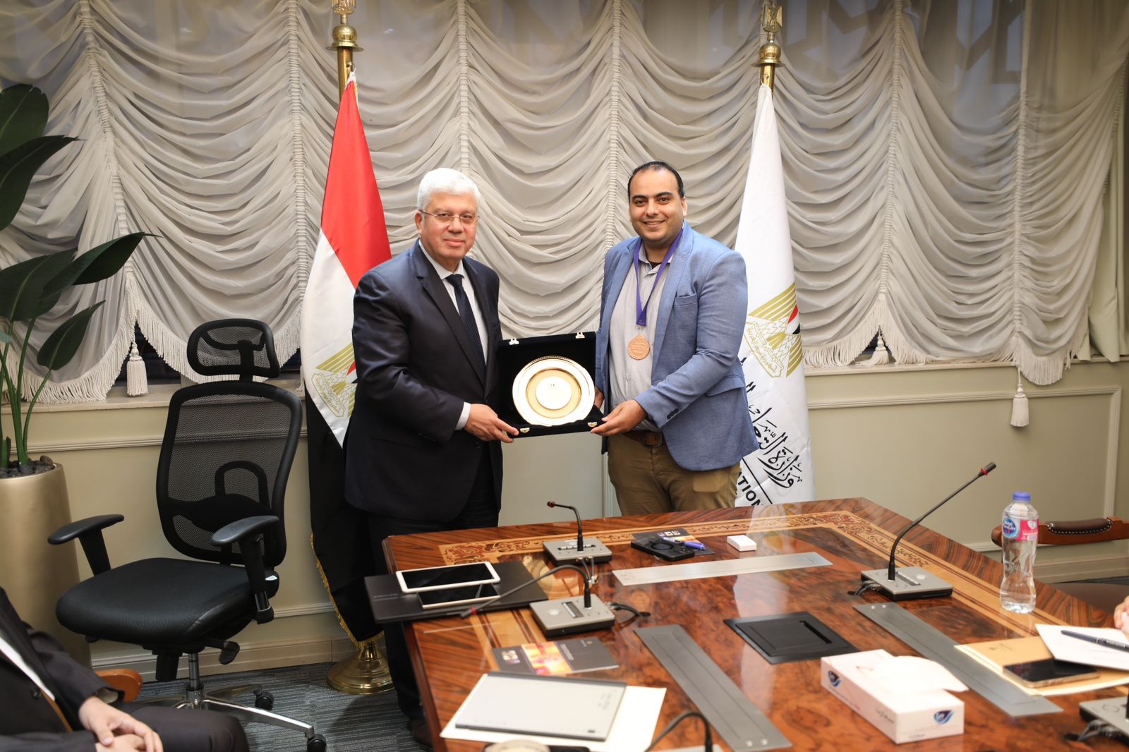 وزير التعليم العالي يكرم المهندس مصطفى السيد لحصوله على "البرونزية" في المعرض الدولي للاختراعات
