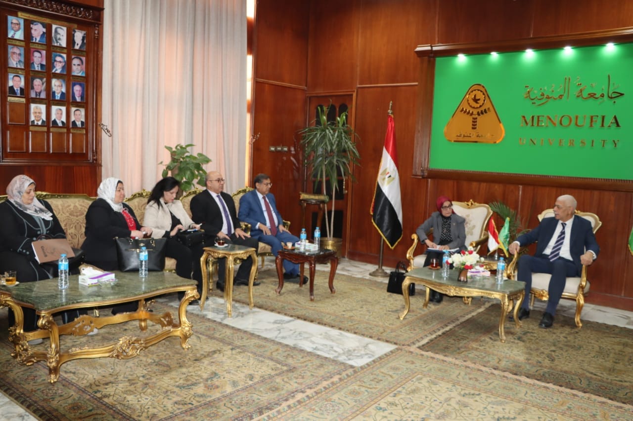 رئيس جامعة المنوفية يستقبل فريق الهيئة القومية لضمان جودة التعليم والاعتماد