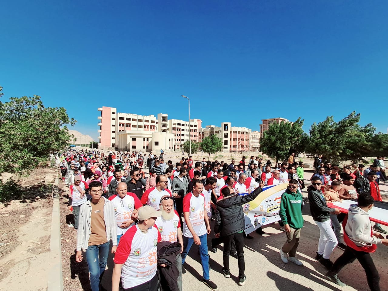 ووجه الدكتور رابح رتيب عميد كلية الحقوق جامعة سوهاج، رسالة من خلال المسيرة بأن شباب مصر هم مستقبلها، ولابد من تعزيز قيمة الانتماء وحب الوطن لديهم، مؤكدًا ضرورة الاهتمام بالرياضة وتشجيع الشباب على ممارستها وترسيخ فوائدها في اذهانهم، حيث أن هذه المبادرة فرصة لكل طالب وطالبة لاستكشاف مهارات جديدة، وبناء صداقات، وتحقيق إنجازات رياضية مختلفة.