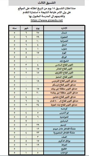 نتيجة تنسيق القبول بالمرحلة الثالثة لرياض الأطفال بالمدارس الرسمية بالجيزة