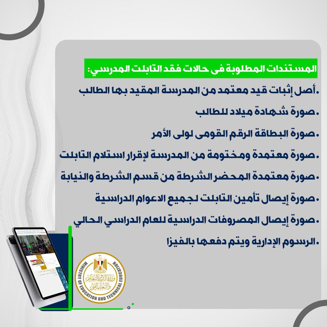 المستندات المطلوبة بحالات فقد التابلت لطلاب الأول الثانوي 2025