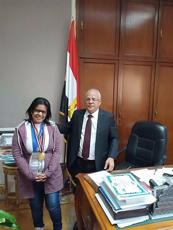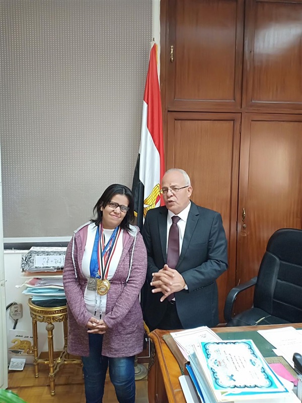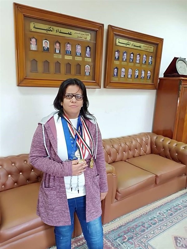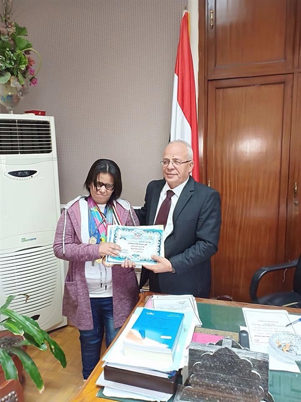 حقوق عين شمس تكرم بطلة مصر في رفع الاثقال " من ذوي الاحتياجات الخاصة "