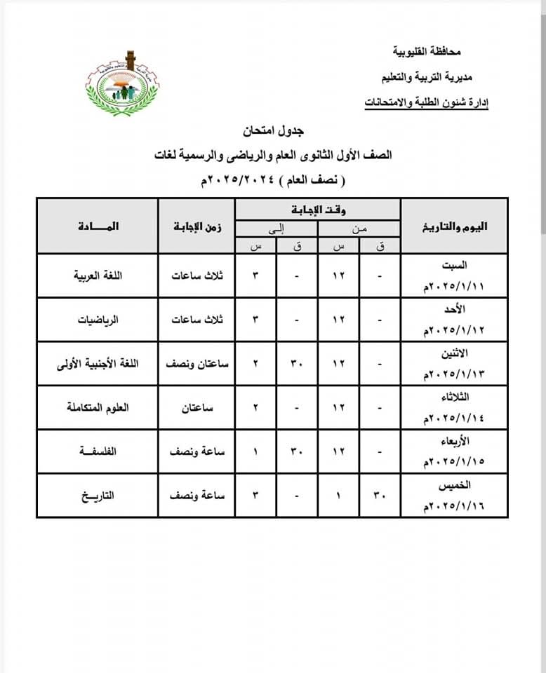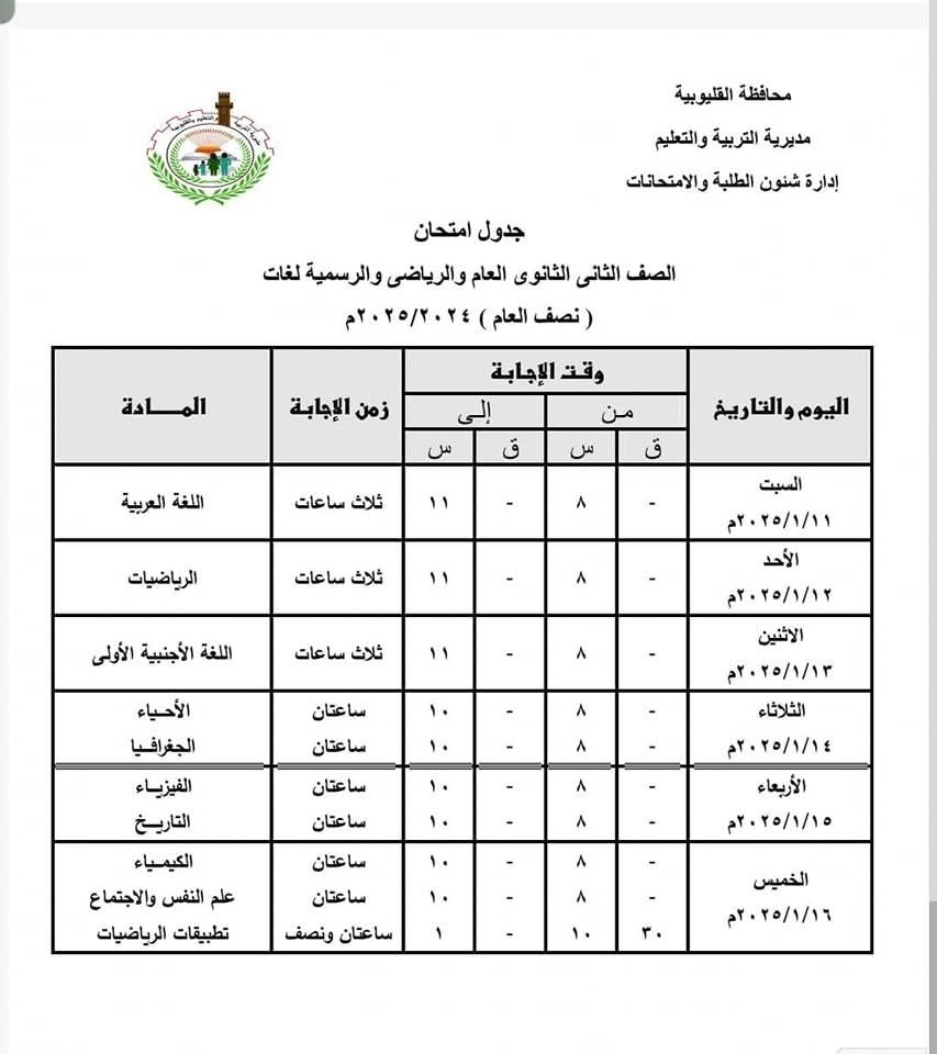 أعلنت مديرية التربية والتعليم والتعليم الفني بمحافظة القليوبية، جداول امتحانات الفصل الدراسي الأول للنقل والشهادة الإعدادية 2025 بالقليوبية.