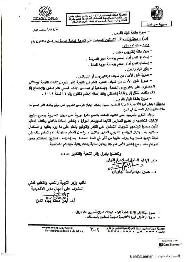 مواعيد تدريب النقل أو التسكين على وظائف كادر المعلمين 2024