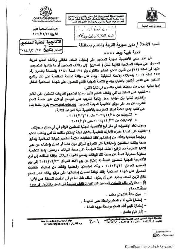 وأشارت إلى أن الاختبارات ستُعقد في مقر فرع الأكاديمية المهنية للمعلمين بالمديريات. كما نوهت بضرورة تنبيه مديري الإدارات التعليمية لتشكيل لجنة لاستلام ملفات شاغلي وظائف التعليم، ومراجعة البيانات والتأكد من استيفاء جميع المتطلبات اللازمة للحصول على شهادة الصلاحية. ويجب اعتماد صحة البيانات من مدير الإدارة التعليمية وتوقيع أعضاء لجنة المراجعة عليها، مع تسليم الملفات إلى فرع الأكاديمية من يوم الأحد 22 ديسمبر 2024 حتى يوم الخميس 23 يناير 2025، ليتم تسجيل الاستيفاء على موقع بيانات كادر المعلم.