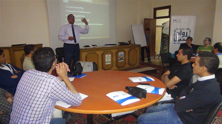 أقيمت ورشة عمل بمركز التطوير الوظيفي بالجامعة، بالتعاون مع جامعة النيل الأهلية، لتنفيذ مبادرة تحديد أفكار المشروعات الريادية، وذلك تحت رعاية الدكتور عباس منصور رئيس جامعة جنوب الوادى.