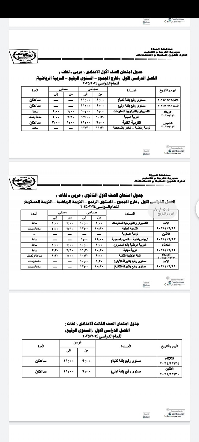 كما قرّرت وزارة التربية والتعليم والتعليم الفني أن يبدأ جدول امتحانات نصف العام 2025 الصف الاول الاعدادي وكذلك جدول امتحانات نصف العام 2025 الصف الثاني الإعدادي من 11 يناير 2025