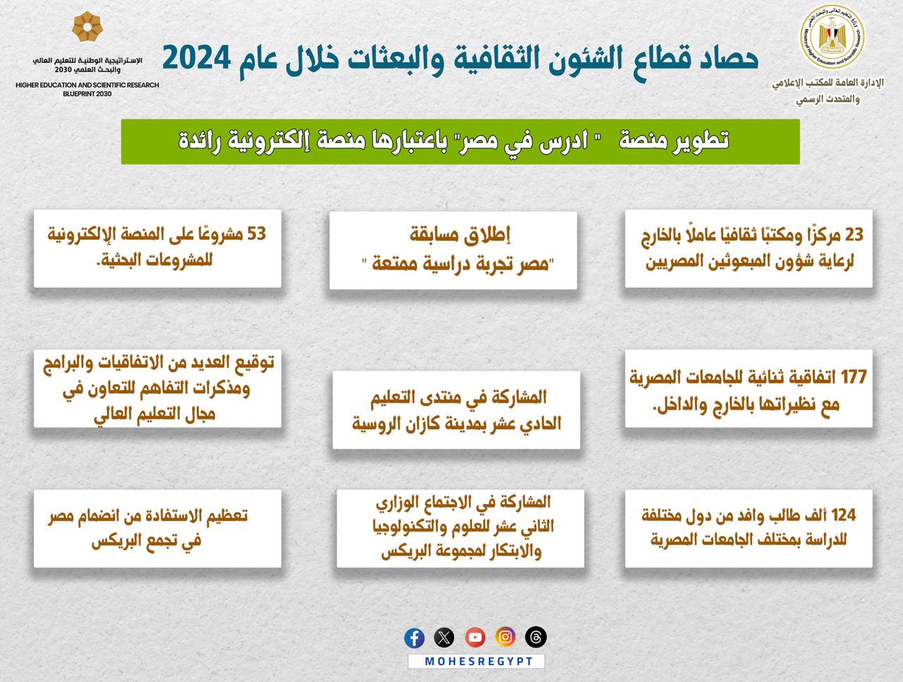 إنجازات التعليم العالي 2024.. قفزات نوعية في الشؤون الثقافية والبعثات
