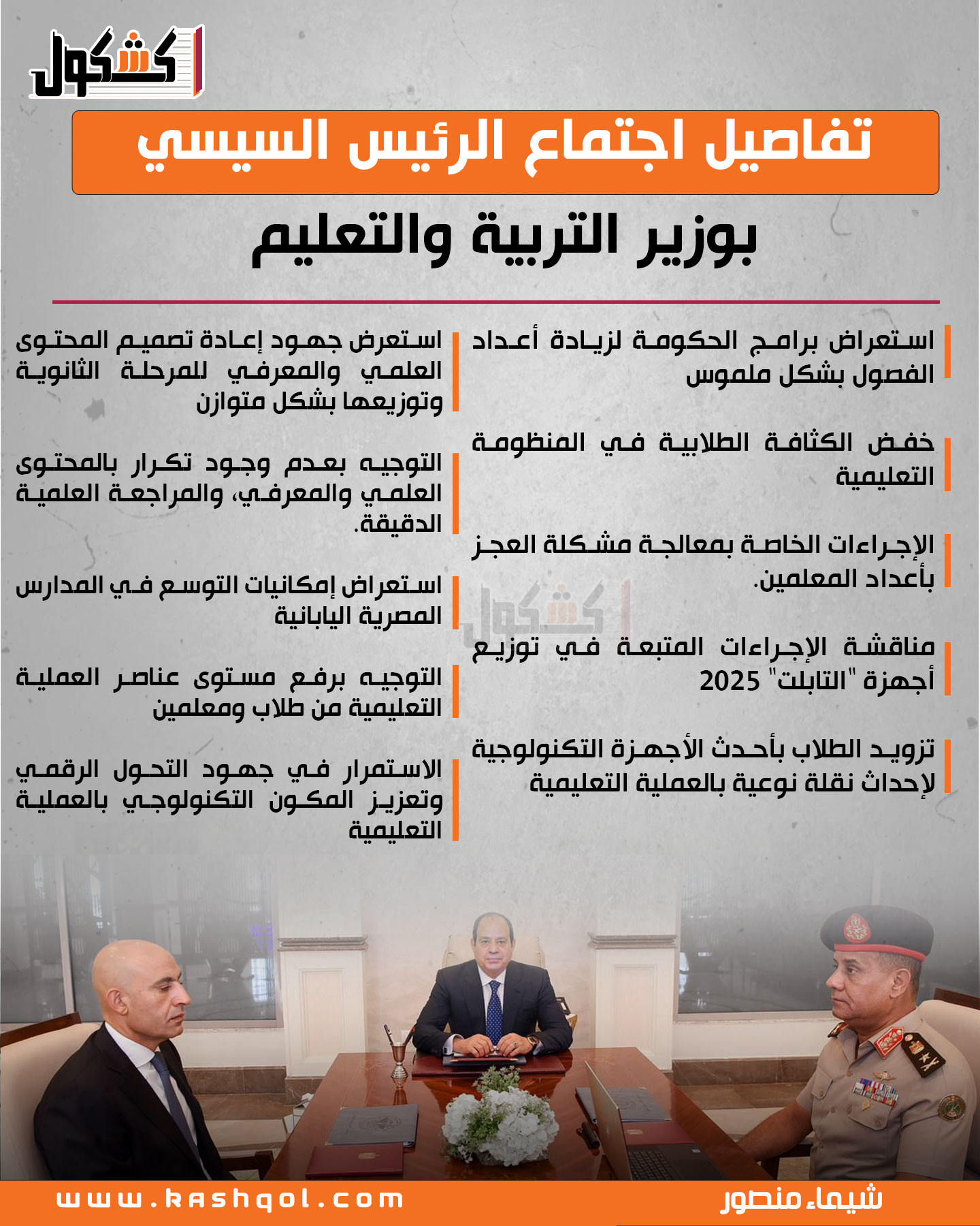 تفاصيل اجتماع الرئيس السيسي بوزير التربية والتعليم