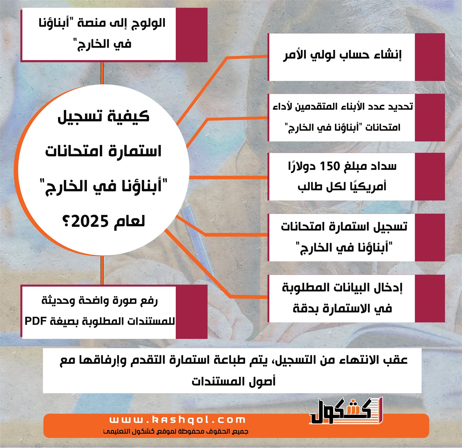 إنفوجراف| كيفية تسجيل استمارة امتحانات "أبناؤنا في الخارج" لعام 2025؟