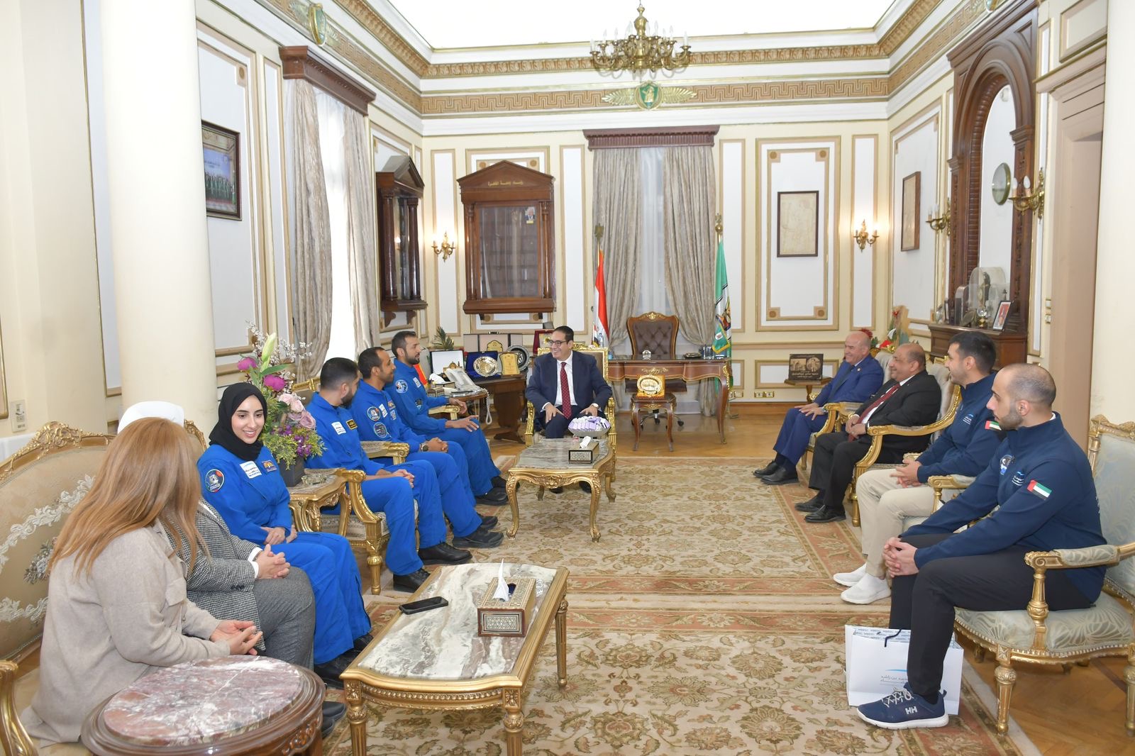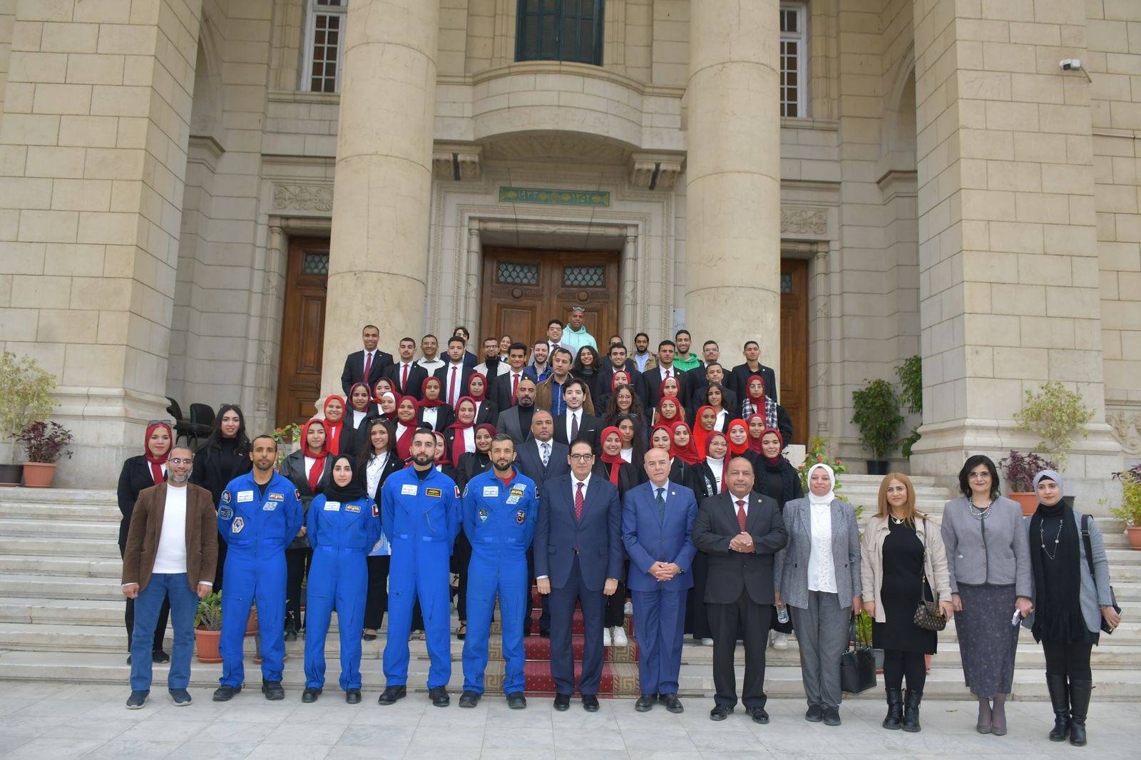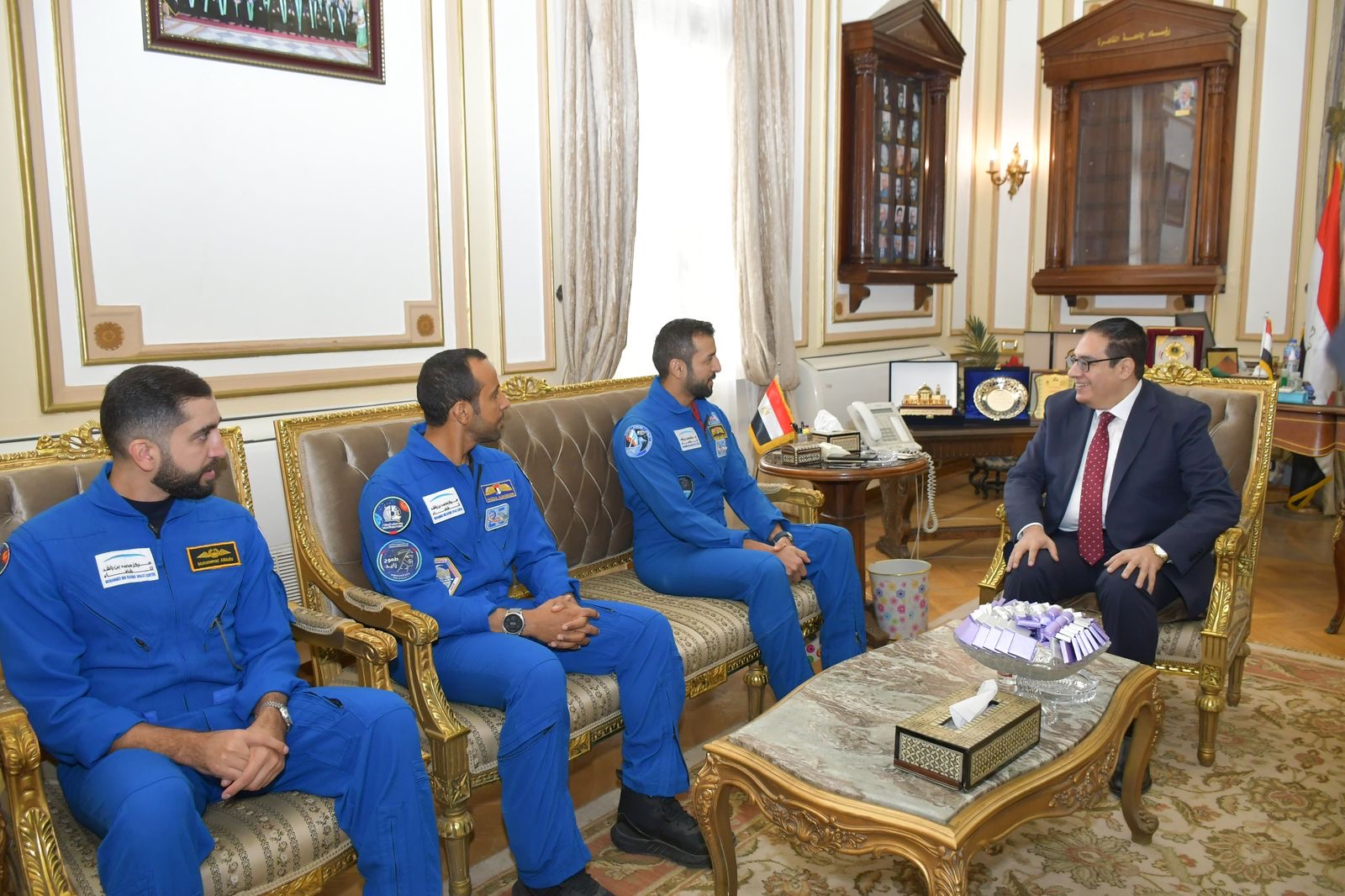 رئيس جامعة القاهرة يستقبل وزير الشباب الإماراتي ووفد من رواد الفضاء الإماراتيين