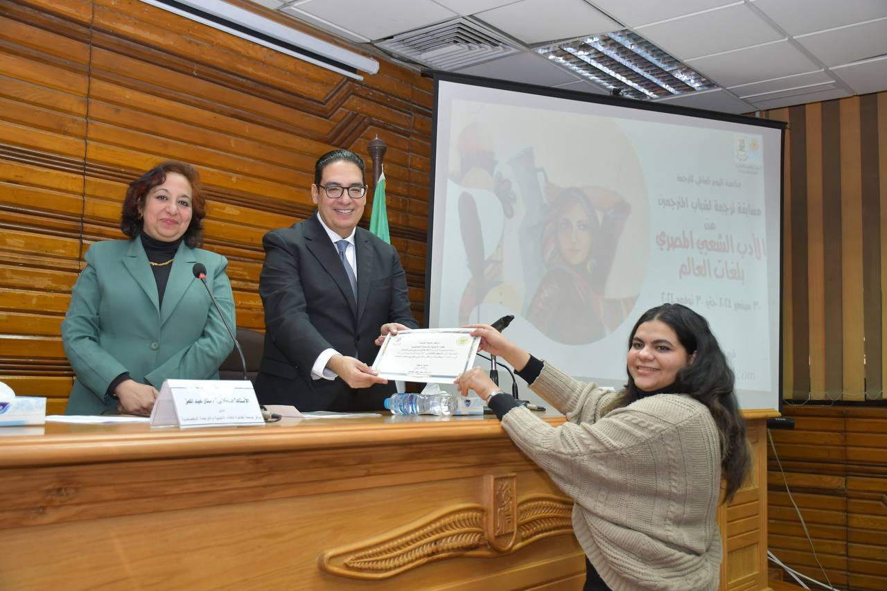 الطالبات والخريجات تحصد المراكز الأولى في المسابقة فى اللغات الثمانية التى تضمنتها حول الحكايات الأدب الشعبي المصري بلغات العالم
