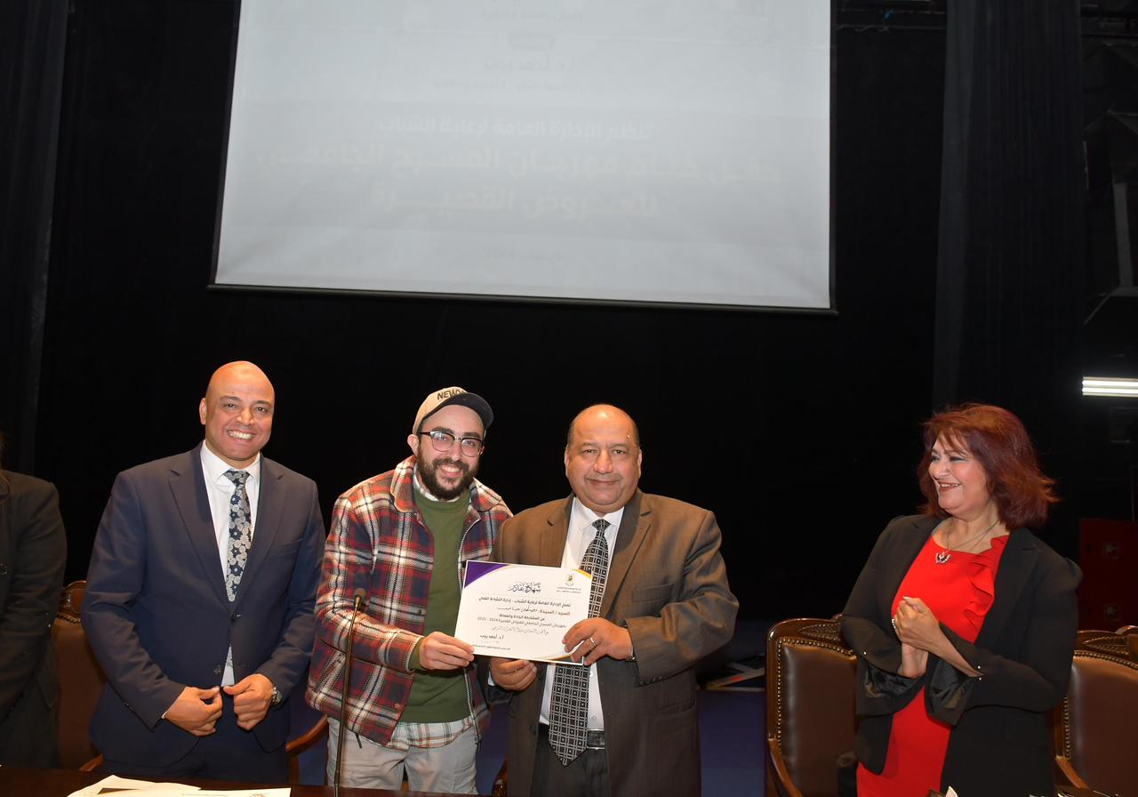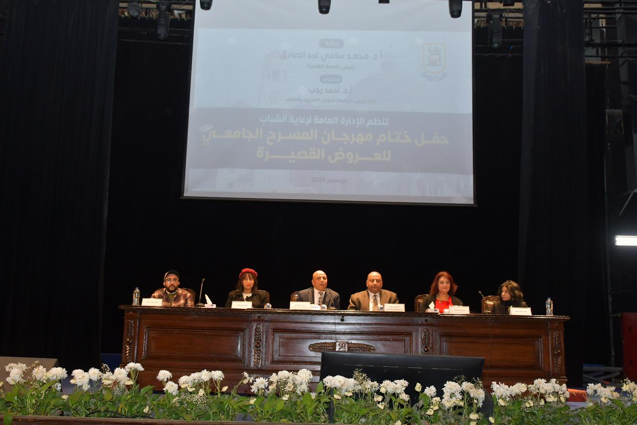 نظمت الإدارة العامة لرعاية الشباب بجامعة القاهرة، برعاية الدكتور محمد سامي عبد الصادق رئيس الجامعة، حفل ختام "مهرجان المسرح الجامعي للعروض القصيرة" وتوزيع الجوائز على الفائزين، بمشاركة 17 كلية، و92 طالبا وطالبة من الفائزين، وبحضور الدكتور أحمد رجب نائب رئيس الجامعة لشؤون التعليم والطلاب، وأعضاء لجنة التحكيم، وجمع غفير من الطلاب، بقاعة الاحتفالات الكبرى.
