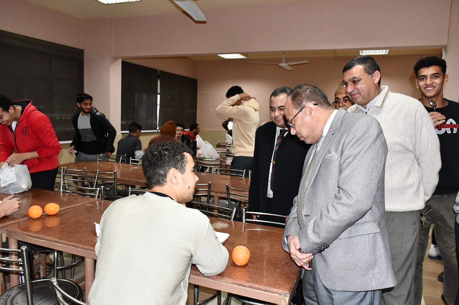 تضمنت الجولة زيارة صالات توزيع الطعام بالمطعمين والاطمئنان على مستوى رضا الطلاب عن جودة وكميات الوجبات المقدمة لهم.