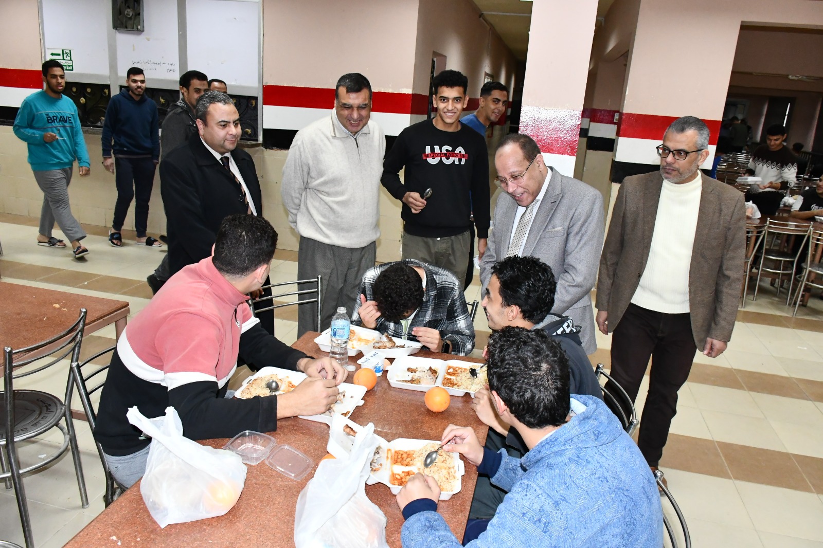 بدأت الجولة في مطعم مدينة الطلاب، حيث استقبله هشام عامر المدير العام للمدن الجامعية، ومحمود نايل، مدير إدارة التغذية.