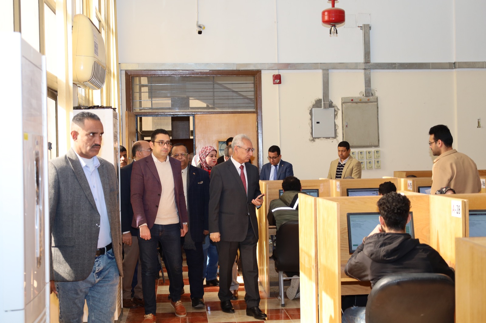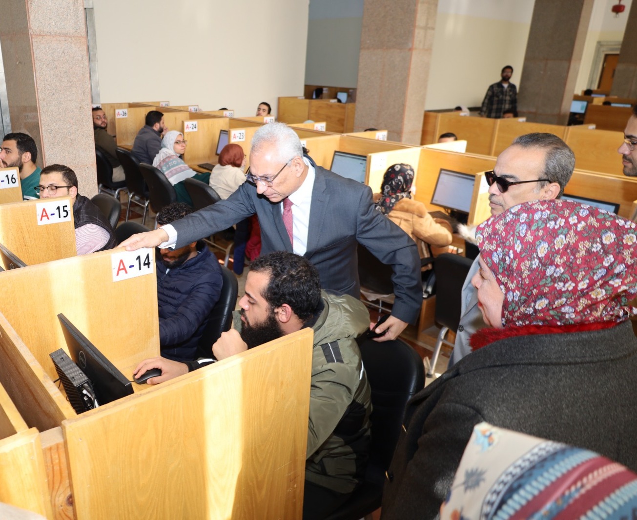 رئيس جامعة المنيا يتفقد سير الاختبارات الإلكترونية لطلاب كليتي الطب والتمريض