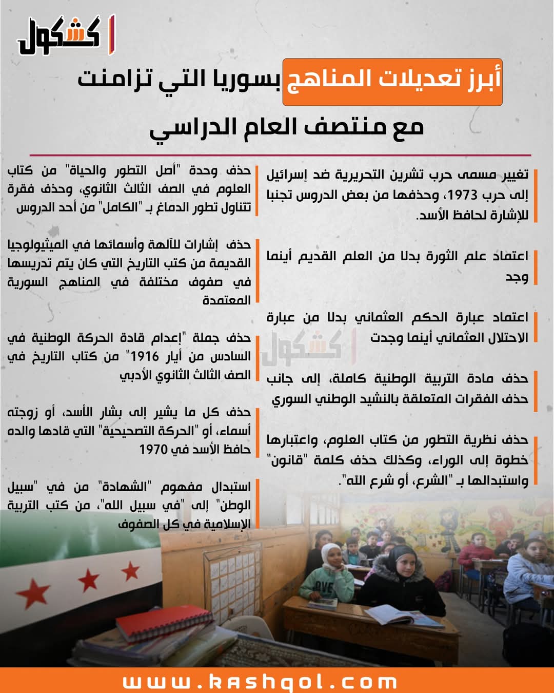 أبرز تعديلات المناهج بسوريا بحكومة محمد الجولاني «انفوجراف»