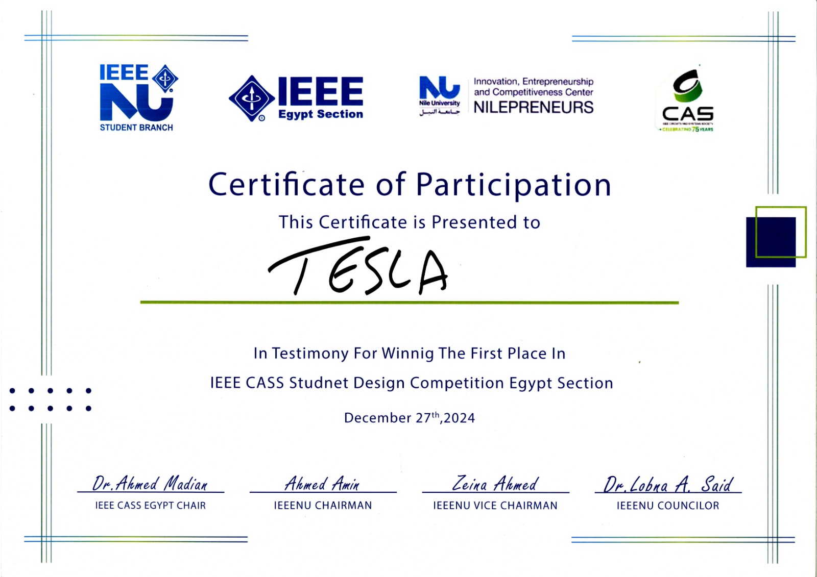 أعلن الدكتور عبدالرازق دسوقي رئيس جامعة كفرالشيخ، عن حصول فريق "تسلا" من طلبة قسم الهندسة الكهربية بكلية الهندسة جامعة كفرالشيخ، على المركز الأول في المسابقة العالمية IEEE CASS Student Design Competition (SDC 2024/2025)، والتي أقيمت بجامعة النيل بمشاركة 20 فريقًا من مختلف الجامعات المصرية.