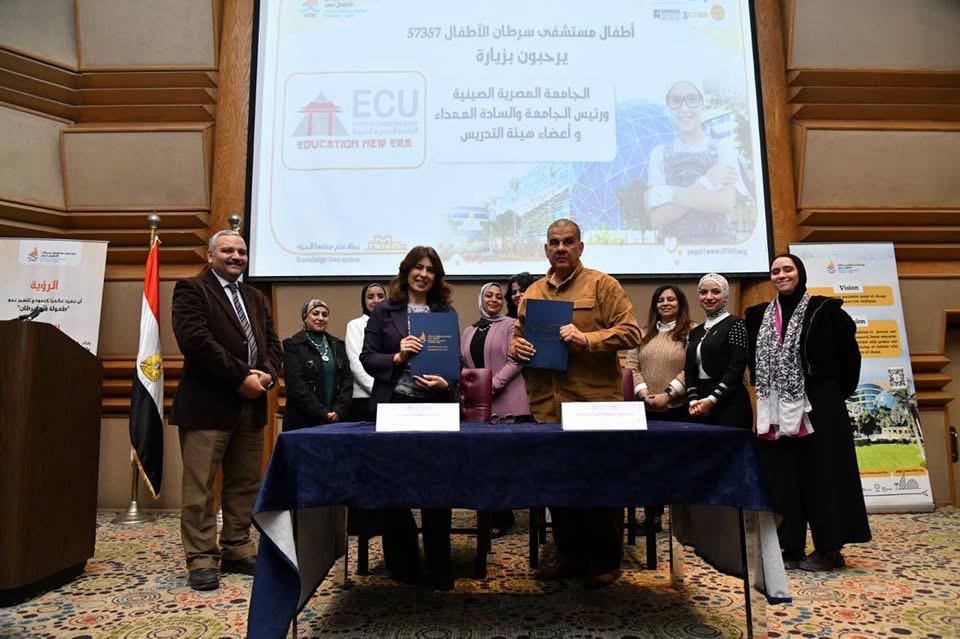 وقع بروتوكول التعاون الدكتورة رشا الخولي رئيس الجامعة المصرية الصينية والدكتور شريف أبو النجا مدير مستشفى 57357، بحضور الدكتور مينا تادرس عميد كلية الصيدلة وتكنولوجيا الدواء، ونخبة من أعضاء هيئة التدريس من الجامعة المصرية الصينية وأطباء مستشفى57357.