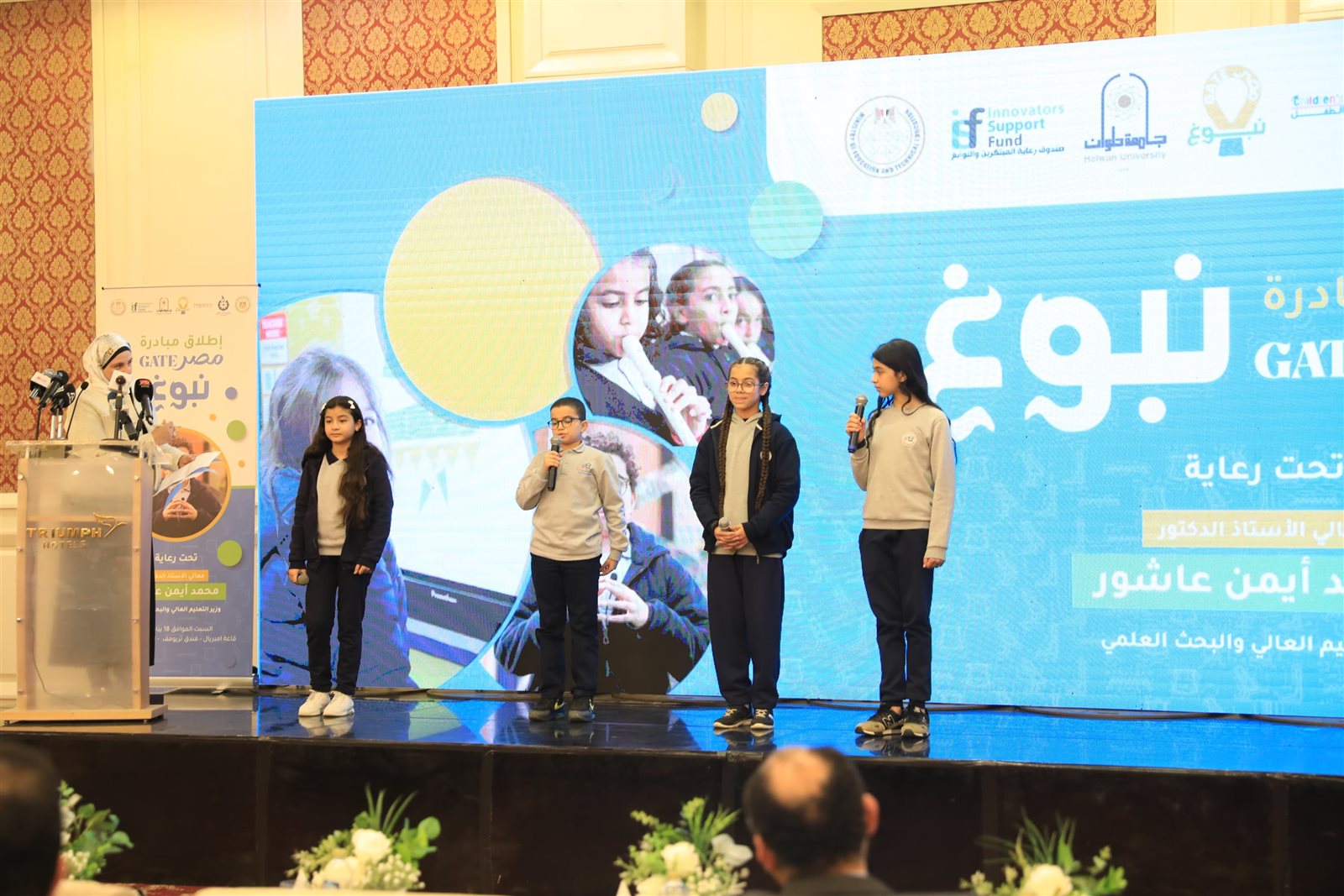 أطلق الدكتور أيمن عاشور وزير التعليم العالي والبحث العلمي ومحمد عبداللطيف وزير التربية والتعليم والتعليم الفني، ومحمد جبران وزير العمل، صباح اليوم السبت، مبادرة (مصر GATE "نبوغ")، بحضور الدكتورة جينا الفقي القائم بأعمال رئيس أكاديمية البحث العلمي والتكنولوجيا، والدكتور هاني عياد المدير التنفيذي لصندوق رعاية المبتكرين والنوابغ، وبحضور عدد من رؤساء الجامعات وقيادات الوزارة وأكاديمية البحث العلمي والتكنولوجيا، وجامعة الطفل، والمراكز البحثية، وعدد من طلاب المدارس، وذلك بأحد الفنادق بالقاهرة الجديدة.