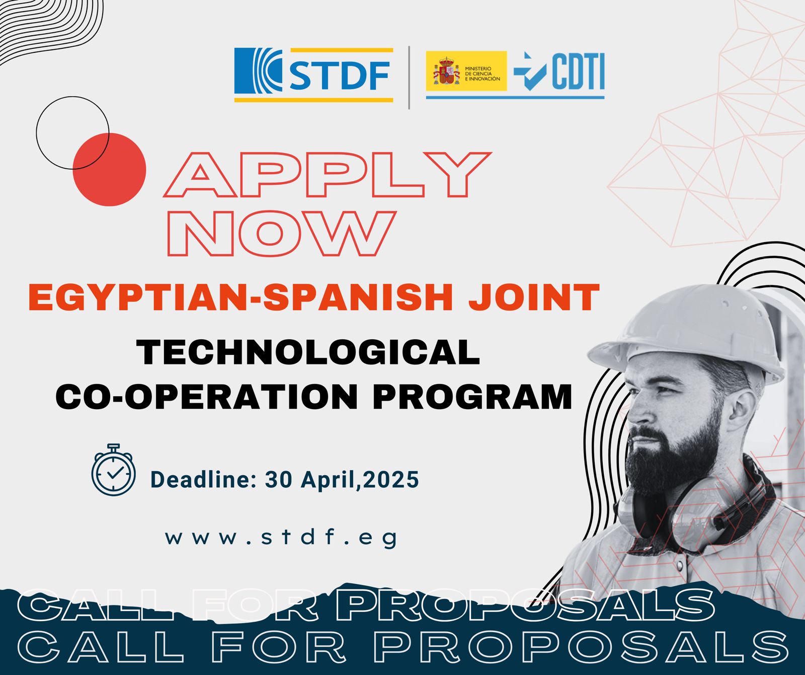 أعلنت هيئة تمويل العلوم والتكنولوجيا والابتكار (STDF) بالتعاون مع مركز تطوير التكنولوجيا الصناعية بإسبانيا (CDTI) عن فتح باب التقدم للنداء التاسع لبرنامج التعاون التكنولوجي المصري-الإسباني.