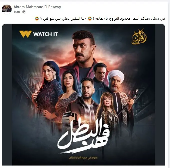 ونشر أكرم البزاوي صورة للبوستر عبر حسابه بموقع فيس بوك: وكتب معلقا: "ده عدم تقدير لوالدي وتاريخه أنه يبقى من أبطال العمل ومش موجود على بوستر مجمع.. انا مش بقول الكلام ده من السمع، أنا قريت المسلسل كله وعارف كل شخصية فيه بتعمل ايه".