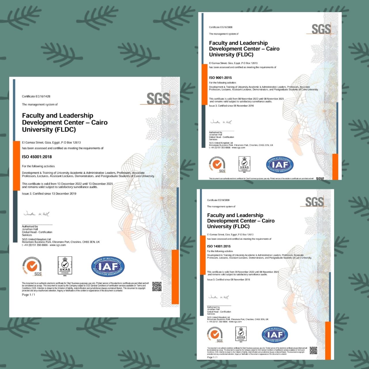 رئيس جامعة القاهرة: شهادات الأيزو منحتها مؤسسة SGS السويسرية الدولية لالتزام المركز بتطبيق المعايير الدولية في الإدارة والسلامة والصحة المهنية ومتطلبات جودة البيئة