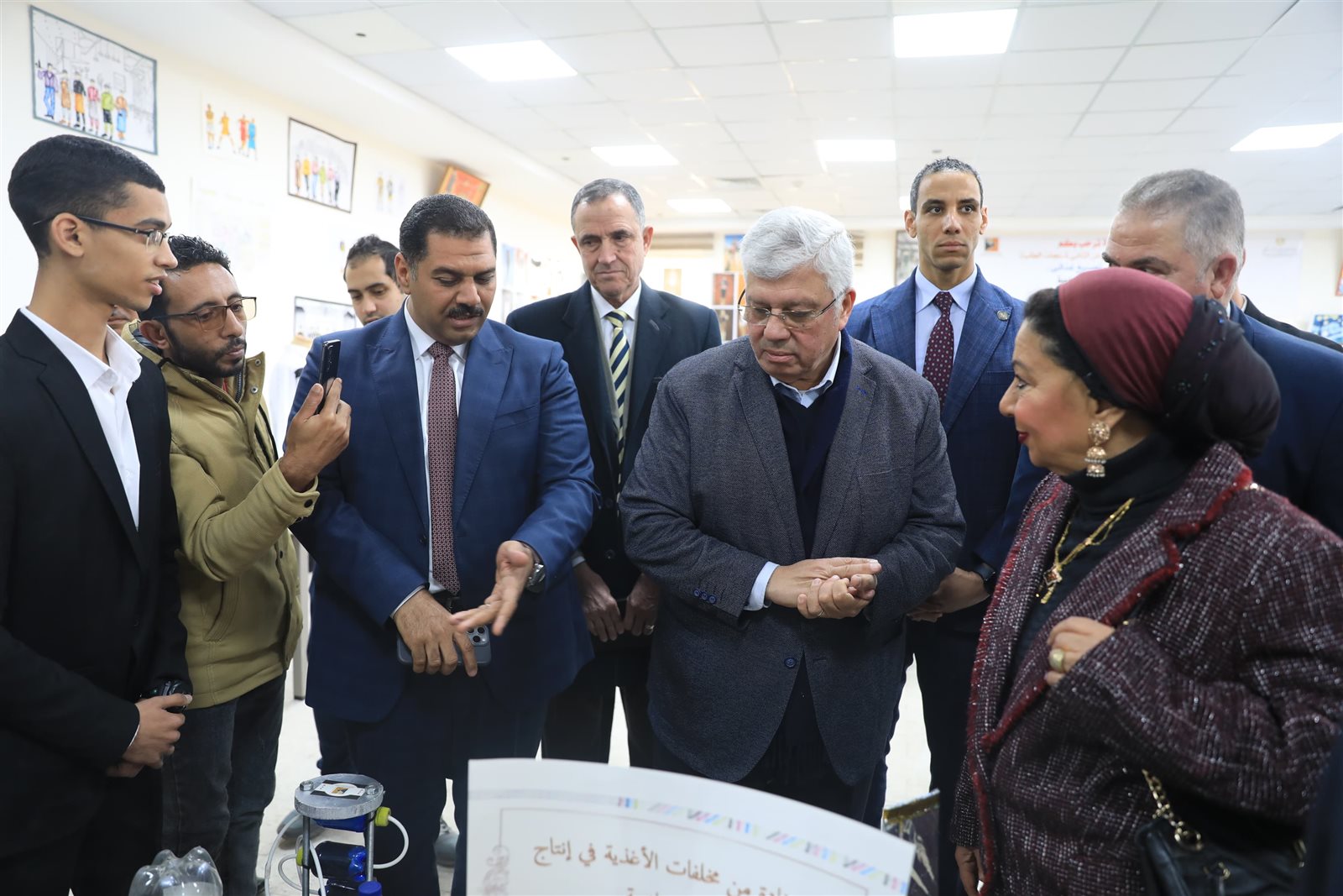 كما تفقد وزير التعليم العالي والبحث العلمي، معرض الجامعة، ويحتوي على عدد من الماكينات كنماذج لمشروعات تطبيقية، وأثنى الوزير على المنتجات التي نفذها الطلاب، التي تُعد نتاجًا للتدريبات العملية والتطبيقية.
