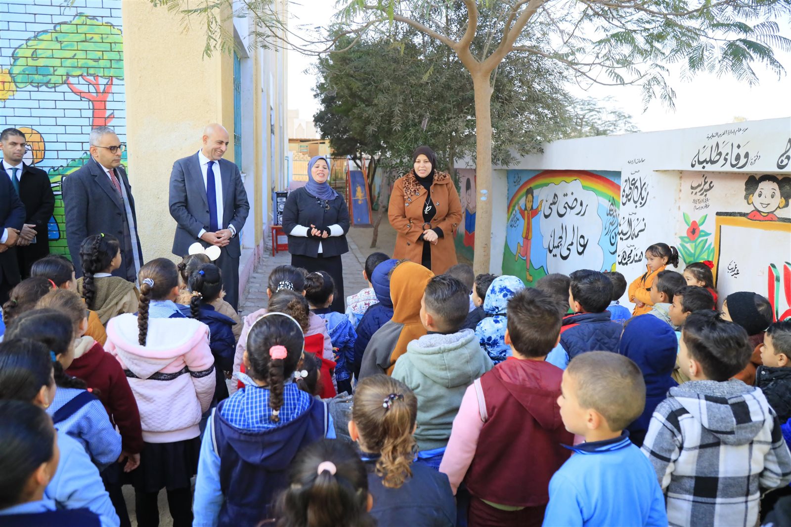 وعقب ذلك، توجه الوزير إلى مدرسة "عمر بن الخطاب للتعليم الأساسي" التابعة لإدارة الصالحية الجديدة والتى يبلغ عدد طلابها (١٤٤٩) طالب وطالبة.