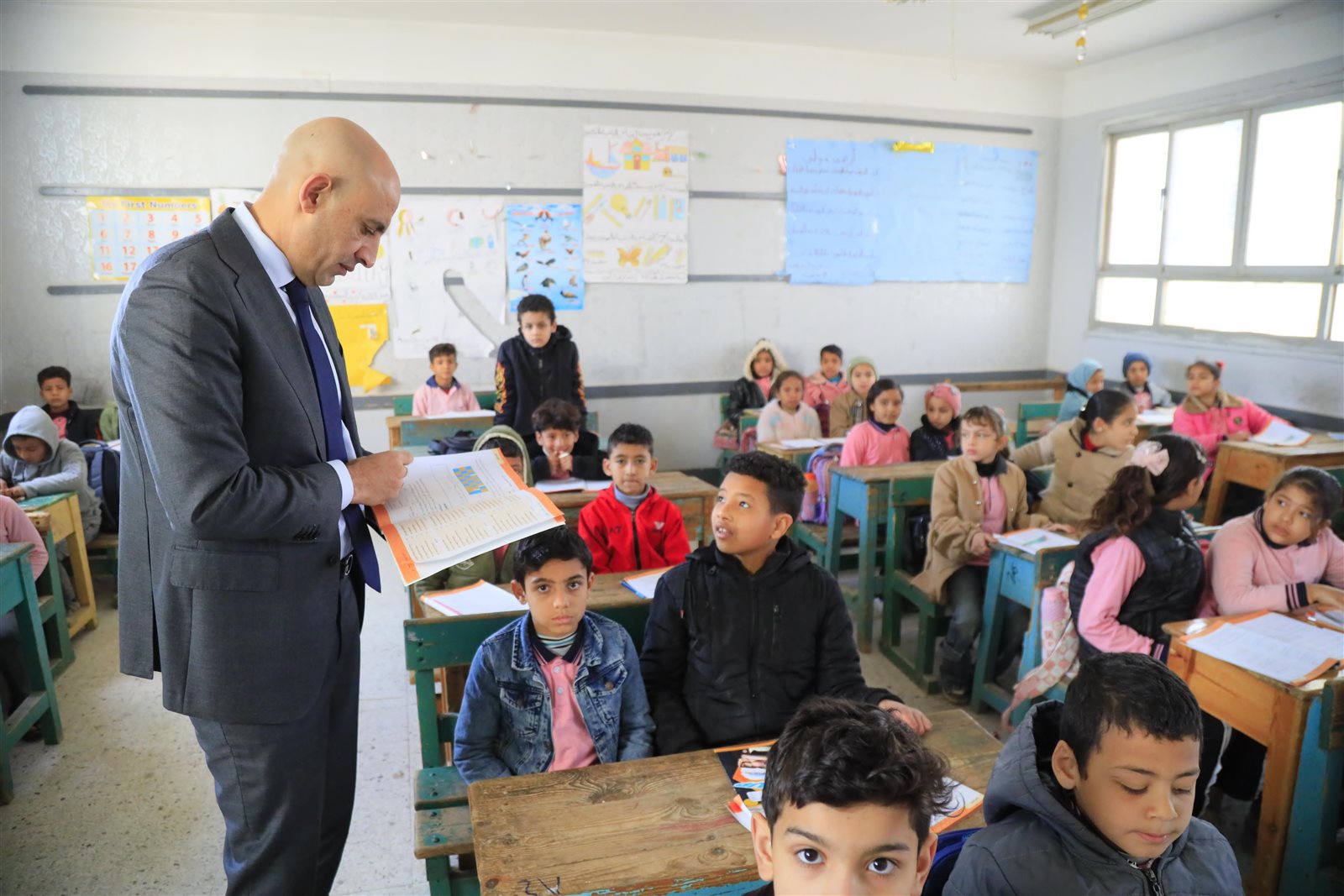 وأشاد وزير التربية والتعليم خلال تفقد أحد فصول الصف الرابع الابتدائي، أثناء شرح مادة الرياضيات، بدور معلمة الرياضيات واهتمامها بالشرح وكراسات الحصة والتدريبات.