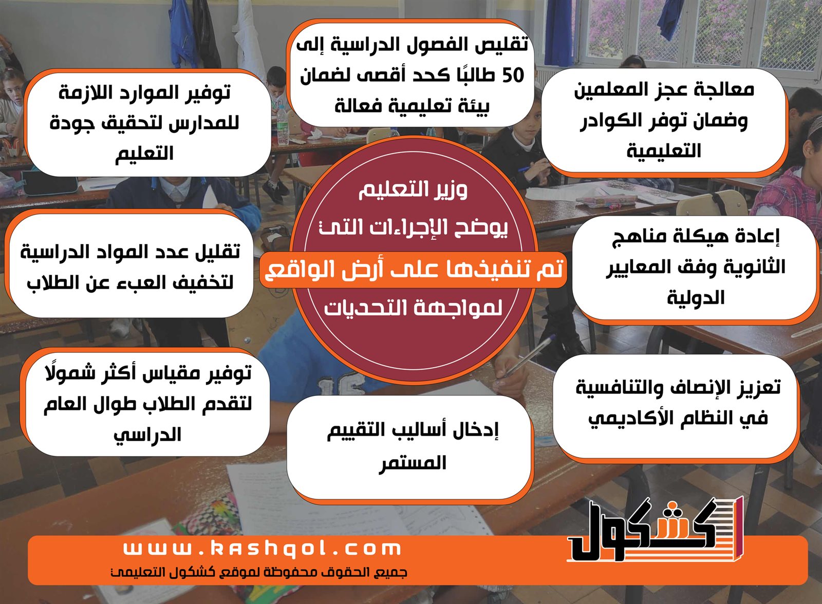 انفوجراف.. وزير التعليم يوضح الإحراءات التي تم تنفيذها على أرض الواقع لمواجهة التحديات