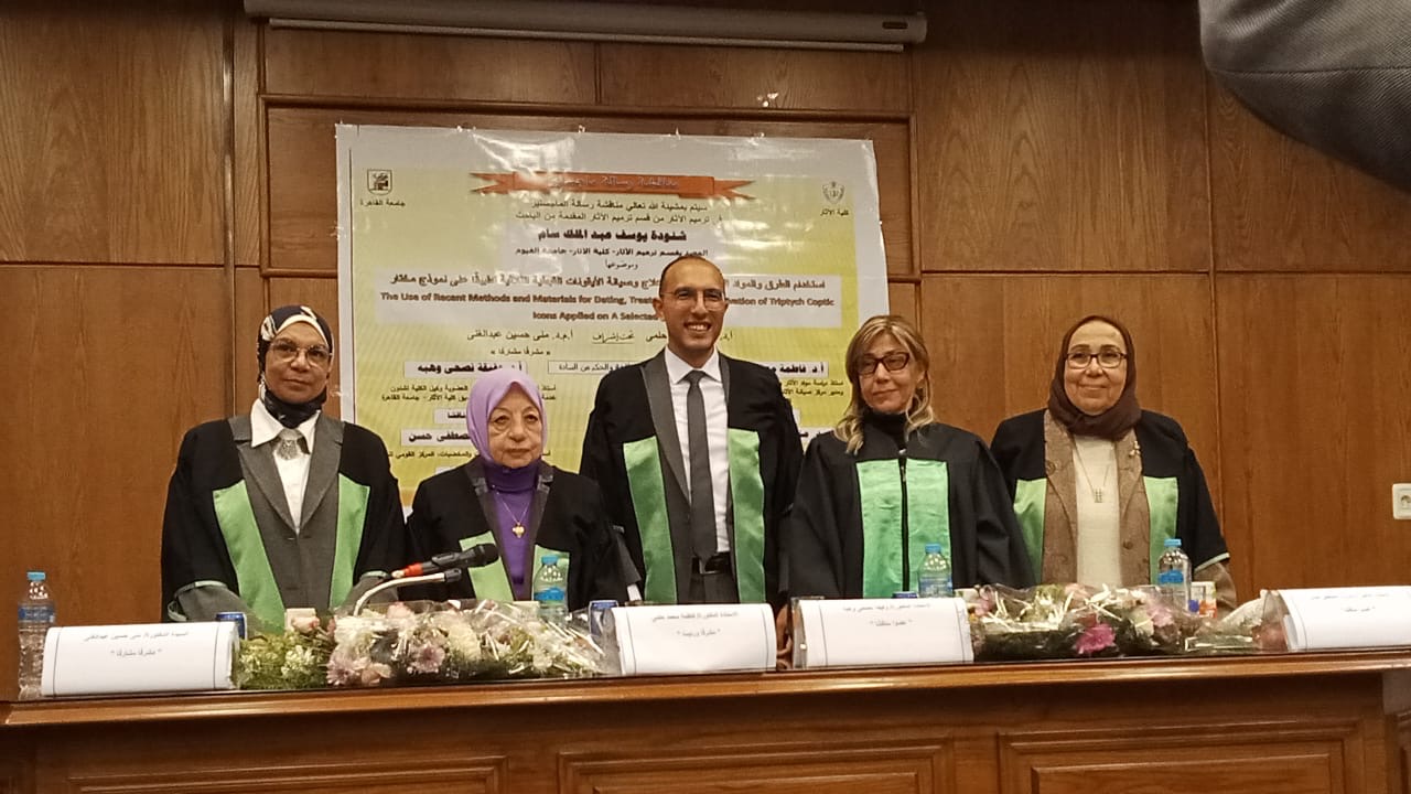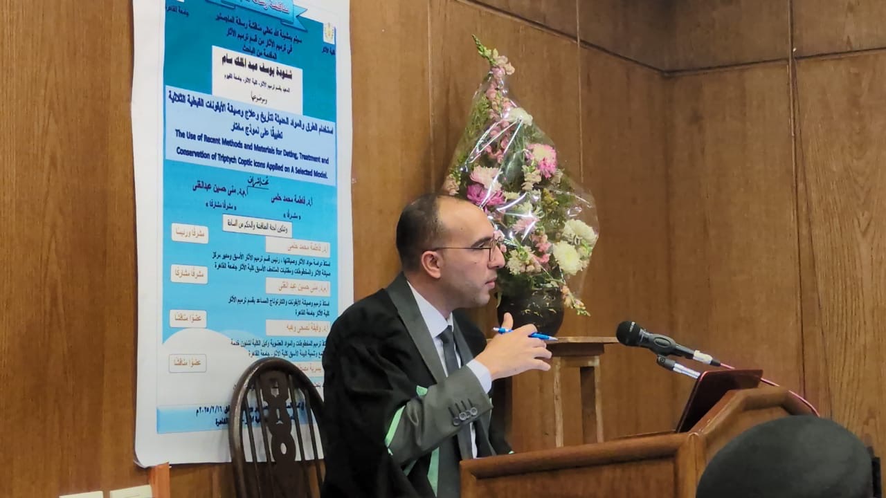 شهدت كلية الآثار بجامعة القاهرة مناقشة رسالة ماجيستير بعنوان "استخدام الطرق والمواد الحديثة لتاريخ وعلاج وصيانة الأيقونات القبطية الثلاثية تطبيقًا على نموذج مختار"، للباحث شنوده يوسف عبدالملك المعيد بقسم ترميم الآثار بكلية الأثار جامعة الفيوم.