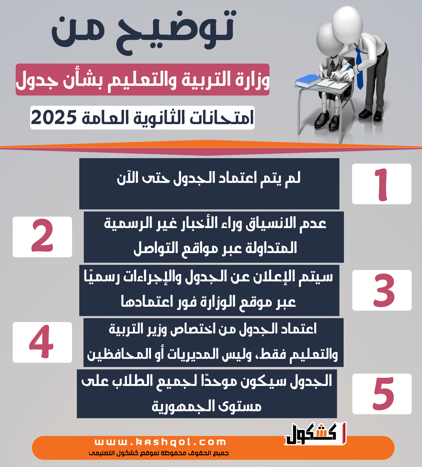 توضيح من وزارة التربية والتعليم بشأن جدول امتحانات الثانوية العامة 2025 «إنفوجراف»