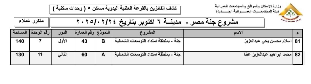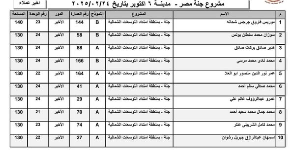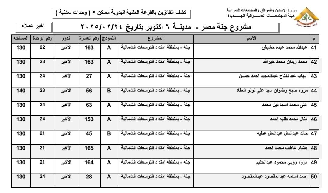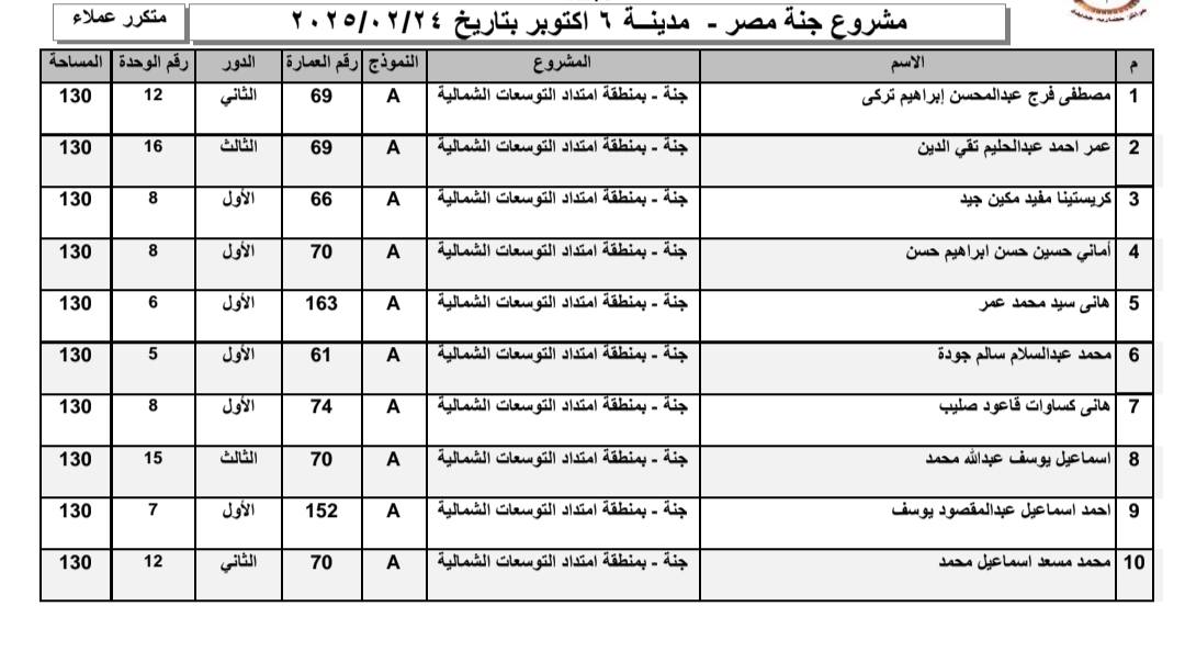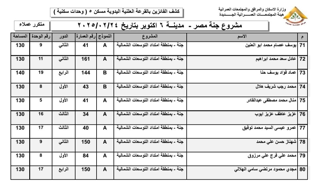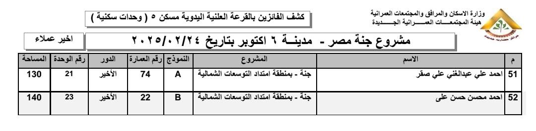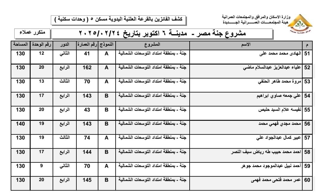 بالصور أسماء الفائزين بقرعة مشروع جنة.. لينك نتيجة (6أكتوبر- القاهرة الجديدة)