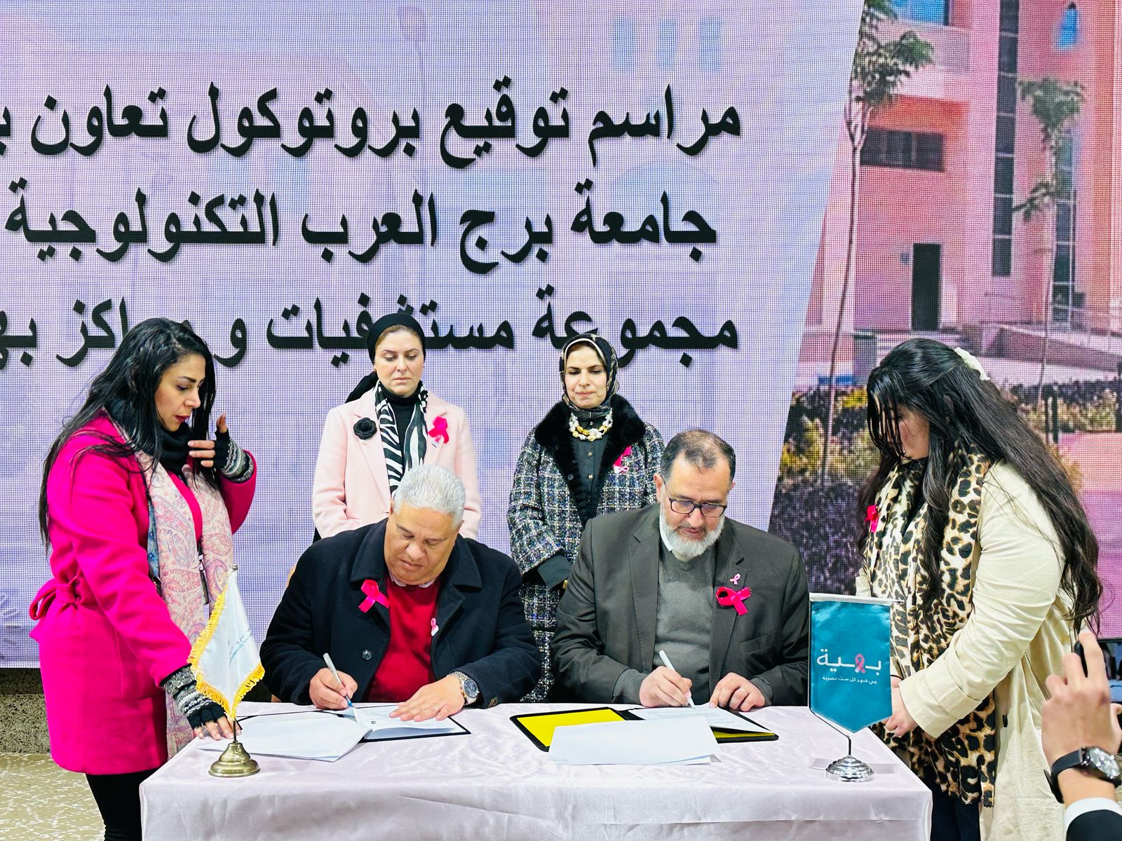 شهدت أمس جامعة برج العرب التكنولوجية، برئاسة الدكتور محمد مرسي الجوهري، رئيس الجامعة، توقيع بروتوكول تعاون مع مستشفى بهية المتخصصة في علاج سرطان الثدي.