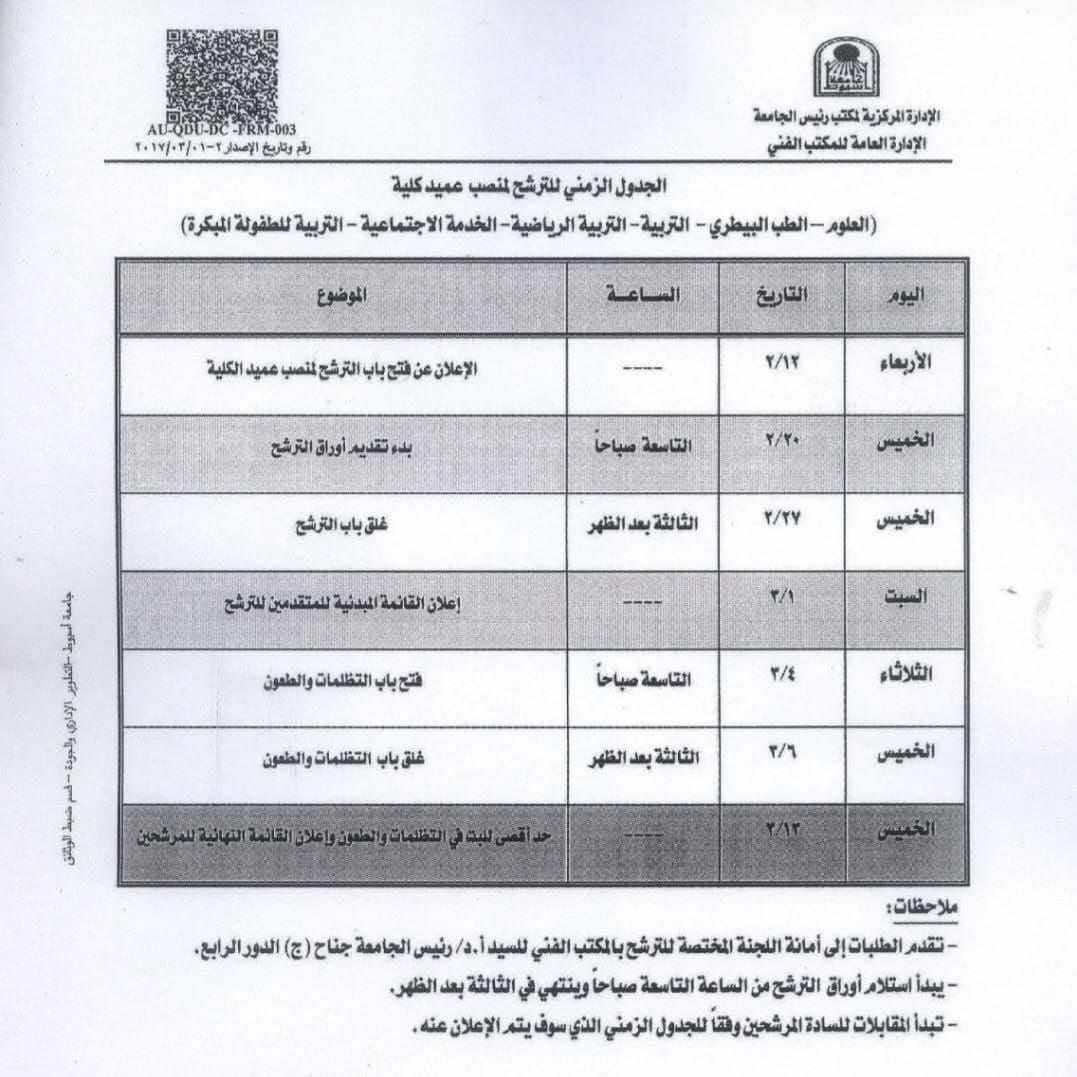أعلنت اللجنة المختصة بترشيح عمداء جامعة أسيوط، برئاسة الدكتور أحمد المنشاوي، رئيس الجامعة، اليوم السبت 1 من مارس، القائمة المبدئية للمتقدمين للترشح لشغل منصب عميد لعدد (6) كليات بالجامعة، وهى: العلوم، الطب البيطري، التربية، التربية الرياضية، الخدمة الاجتماعية، والتربية للطفولة المبكرة.
