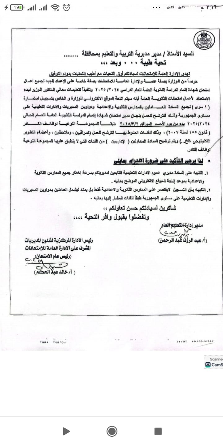 - التنبيه على مديري عموم الإدارات التعليمية التابعين لمديريتكم بسرعة إخطار جميع المدارس الثانوية والإعدادية بموعد إتاحة الموقع الالكتروني الموضح بعاليه.
