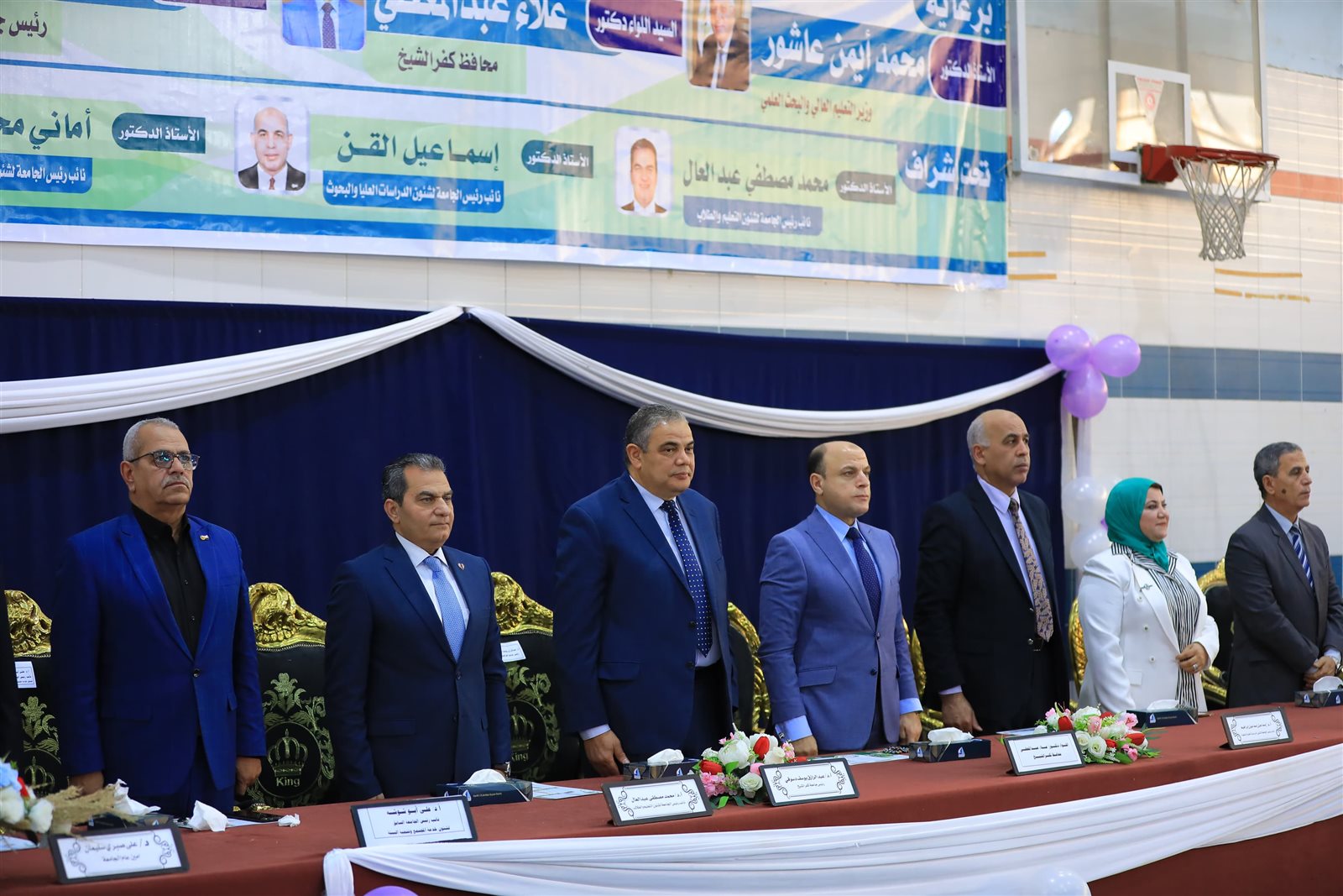 جاء ذلك بحضور الدكتور محمد عبد العال نائب رئيس الجامعة لشئون التعليم والطلاب، والدكتور إسماعيل القن نائب رئيس الجامعة للدراسات العليا والبحوث، والدكتورة أماني شاكر نائب رئيس الجامعة لشئون خدمة المجتمع وتنمية البيئة، والدكتور علي أبو شوشة نائب رئيس الجامعة لشئون خدمة المجتمع، والدكتور رضا صالح نائب رئيس الجامعة لشئون خدمة المجتمع وتنمية اليئة السابق، والدكتور حسن يونس نائب رئيس الجامعة للدراسات العليا والبحوث السابق، وعمداء كليات الجامعة، ولفيف من أعضاء هيئة التدريس وطلاب الجامعة.